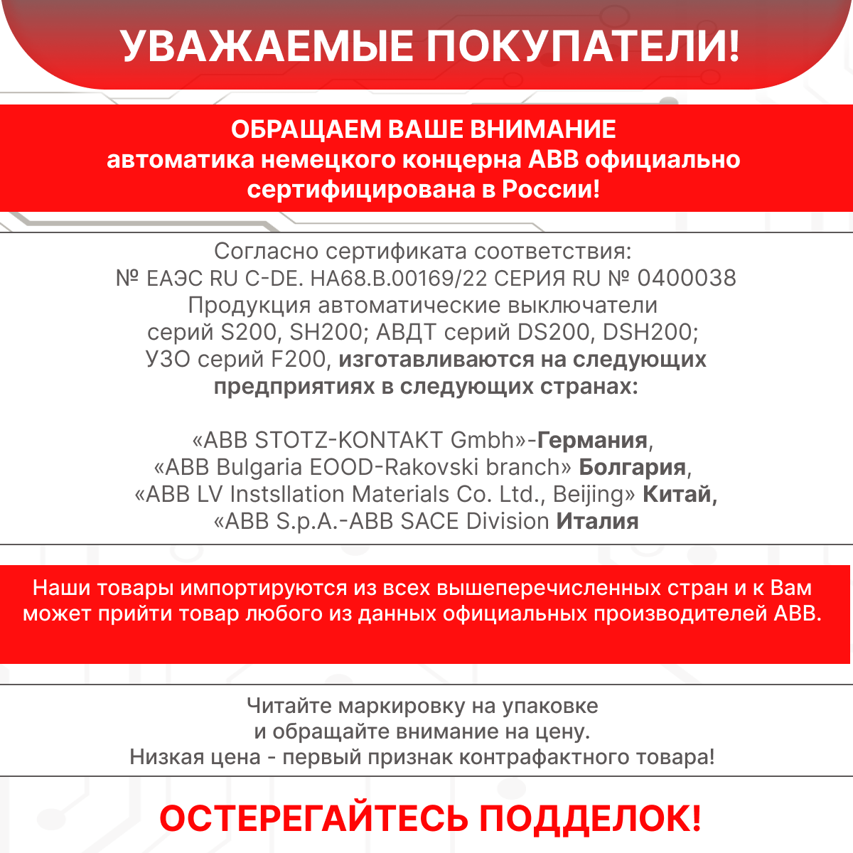 | Отзыв: | На все объекты устанавливаю исключительно автоматы ABB серии "200" |