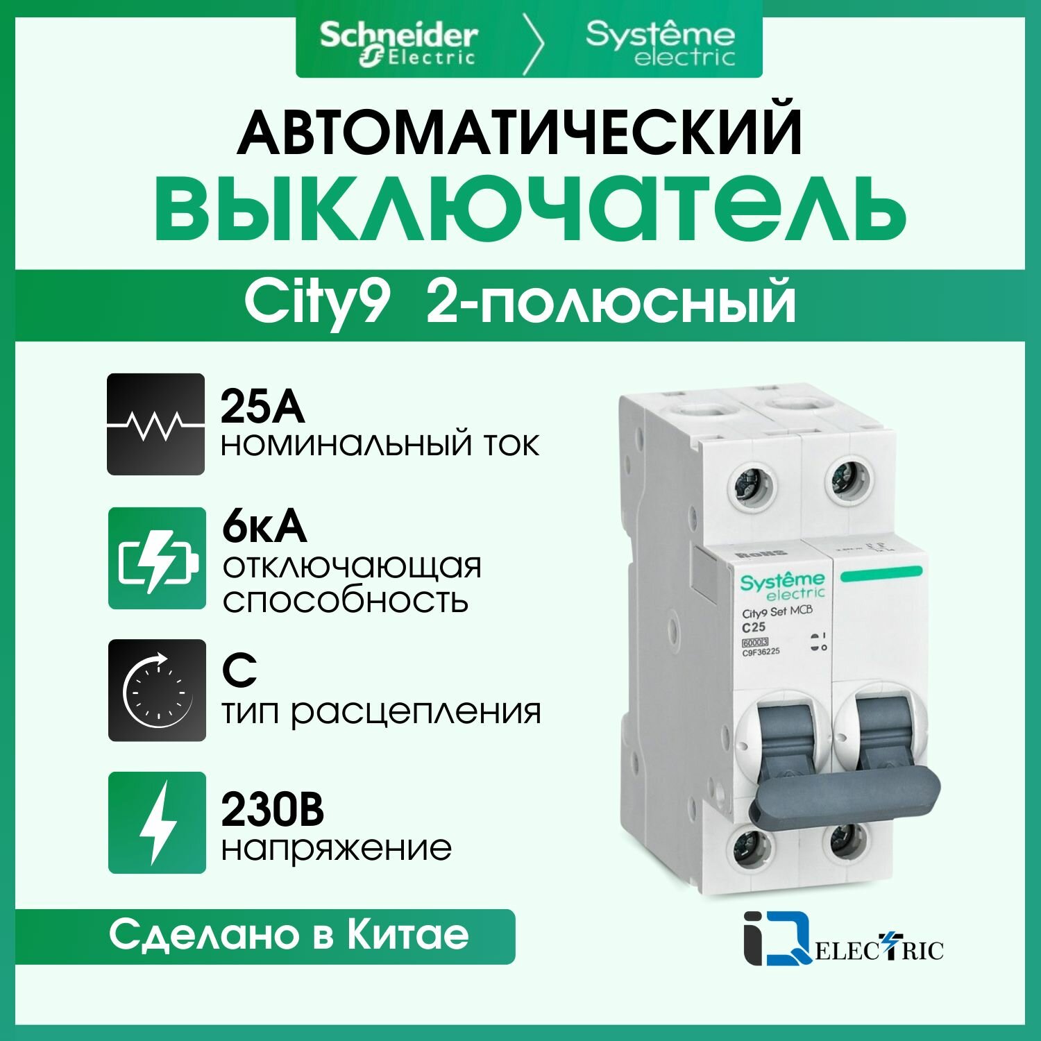 Выключатель автоматический 2P Тип-С 25А 6kA City9 Set Systeme Electric C9F36225