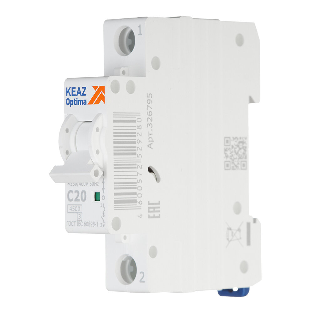 Выключатель автоматический однополюсный 20А C 4,5кА AC OptiDin BM63-1C20-4,5-УХЛ3 326795 КЭАЗ