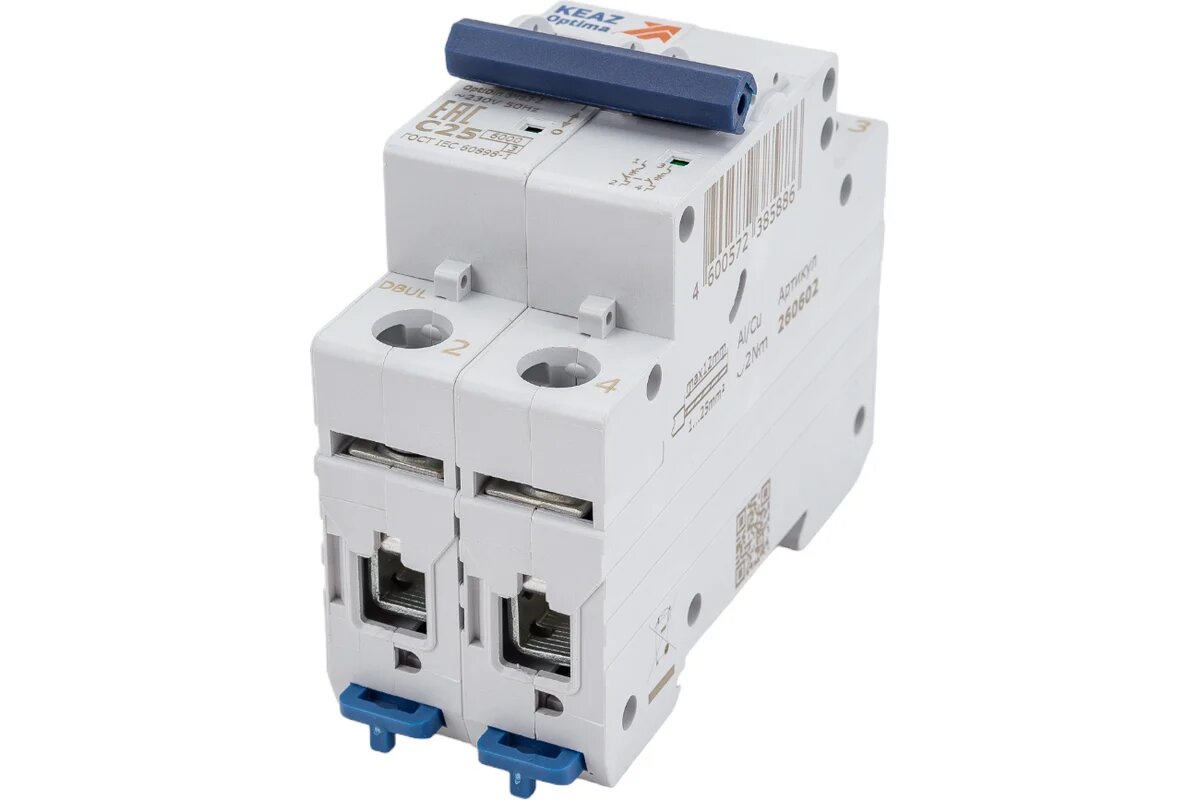 Автоматический выключатель КЭАЗ (260602) 2P 25А 6 кА 220 В на DIN-рейку