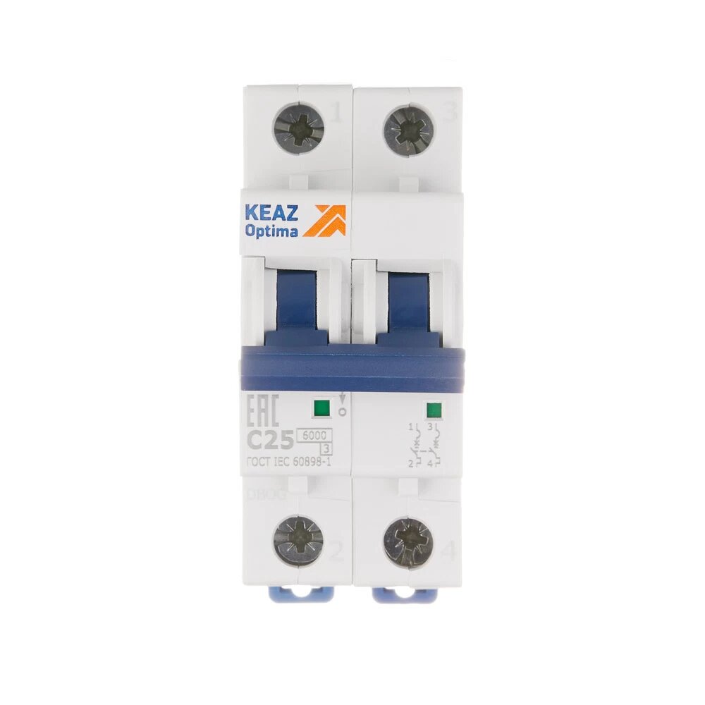 Выключатель автоматический модульный 2п C 25А 6кА OptiDin BM63-2C25-УХЛ3 КЭАЗ 260602 (1 шт.)