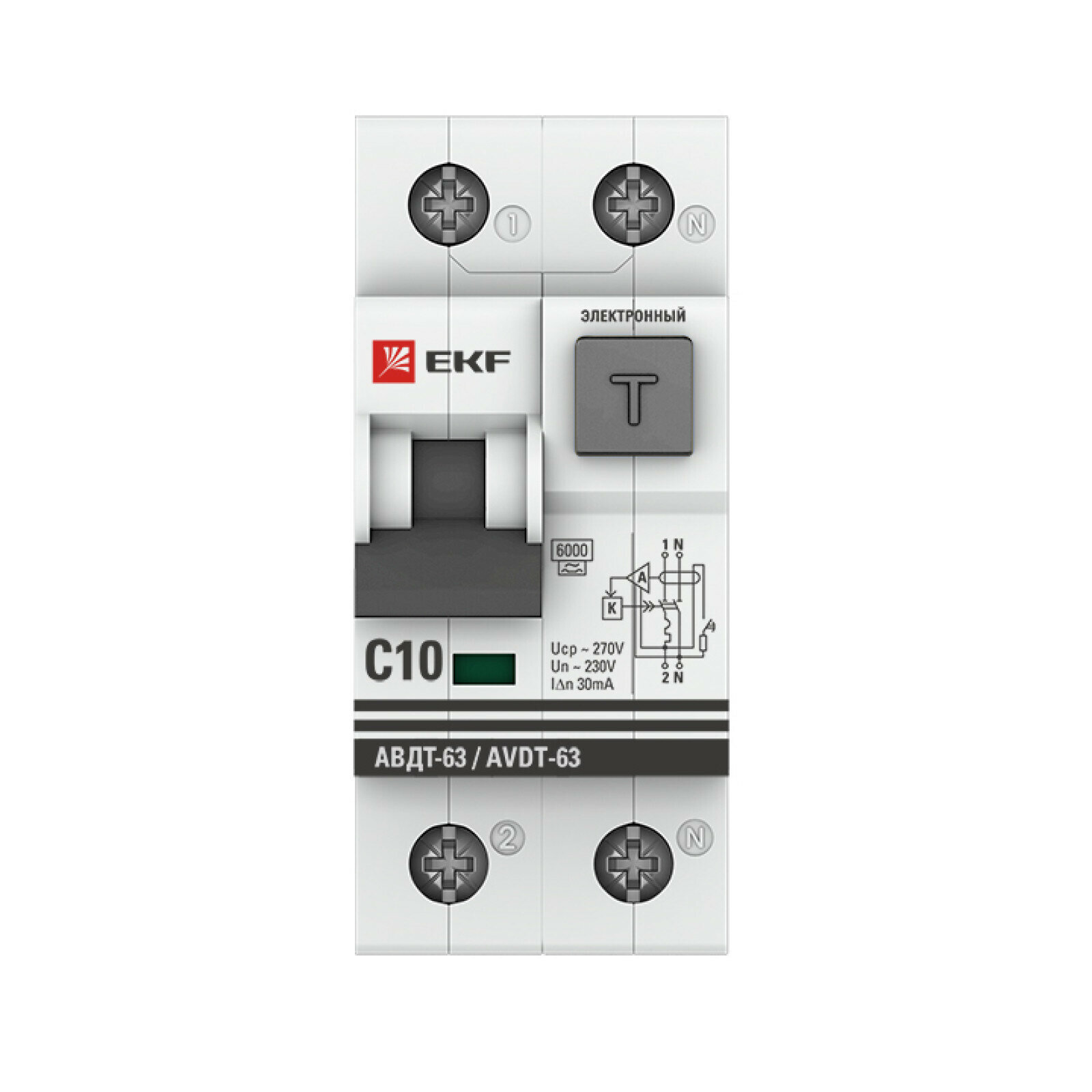 Выключатель автоматический дифференциальный АВДТ-63 1п+N 10А C 30мА тип A PROxima (электронный) | код. DA63-10-30e | EKF ( 1шт. )