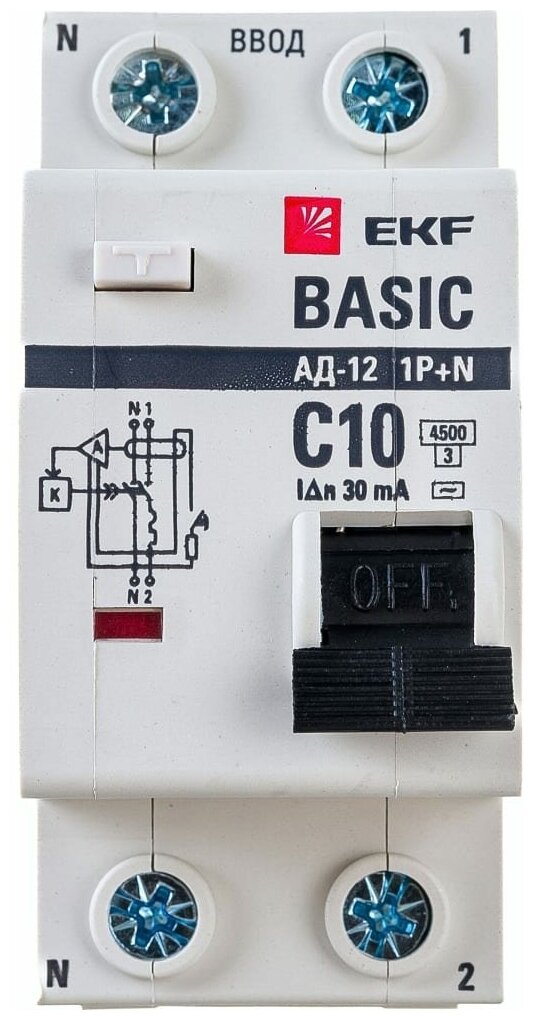 DA12-10-30-bas Дифференциальный автоматический выключатель EKF АД-12 Basic 1П+N 10А 30мА, тип AC, 4.5кА, C