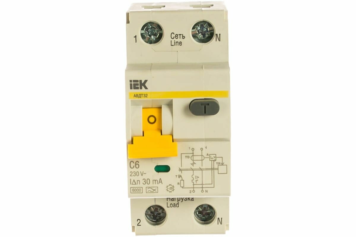Выключатель IEK автоматический дифф. тока АВДТ 32 6A тип C 6kA 30мА A 1П+Н 230В 2мод белый (упак.:1шт)