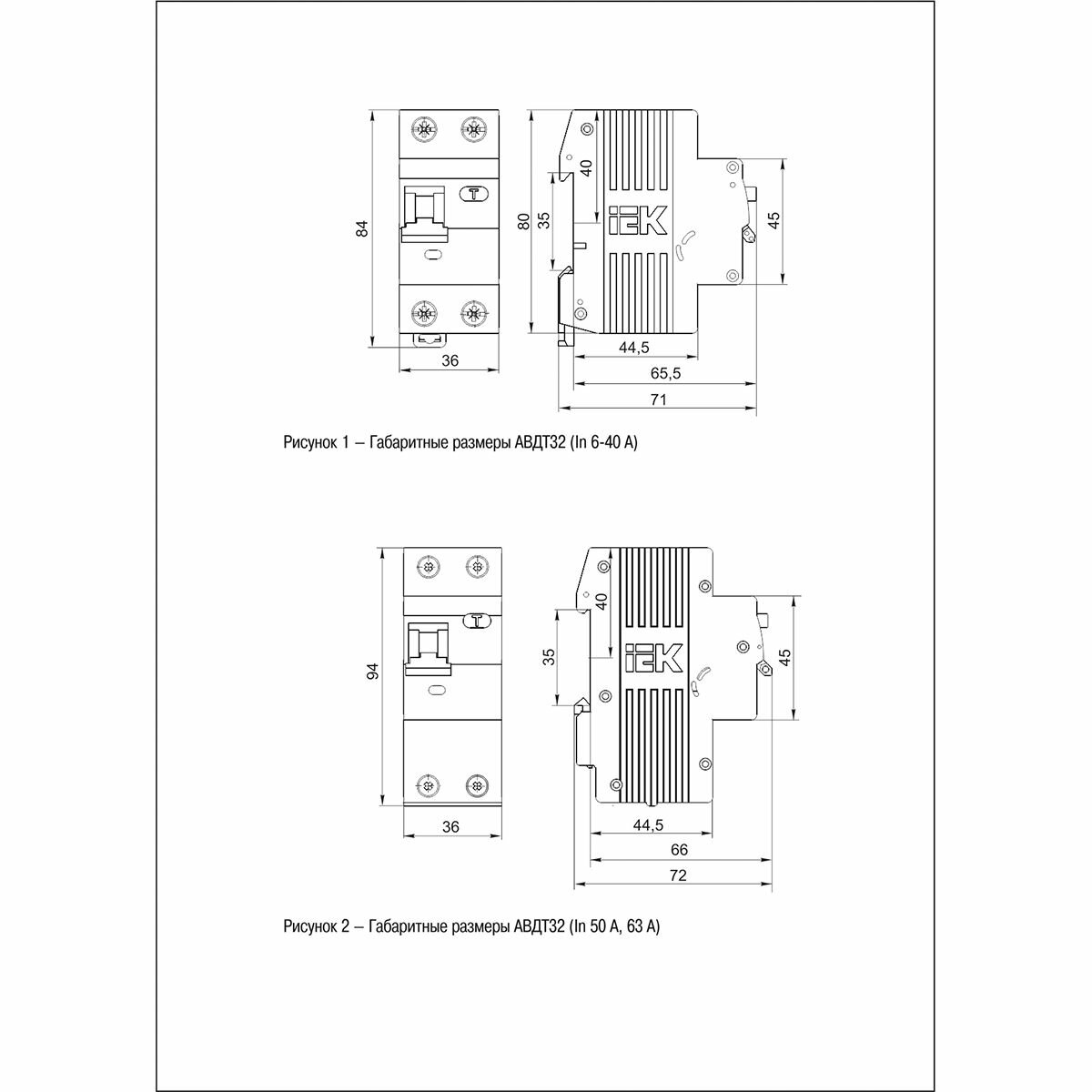Дифференциальный автомат IEK АВДТ 32 2П 30 мА C 6 кА A электронный 40 А
