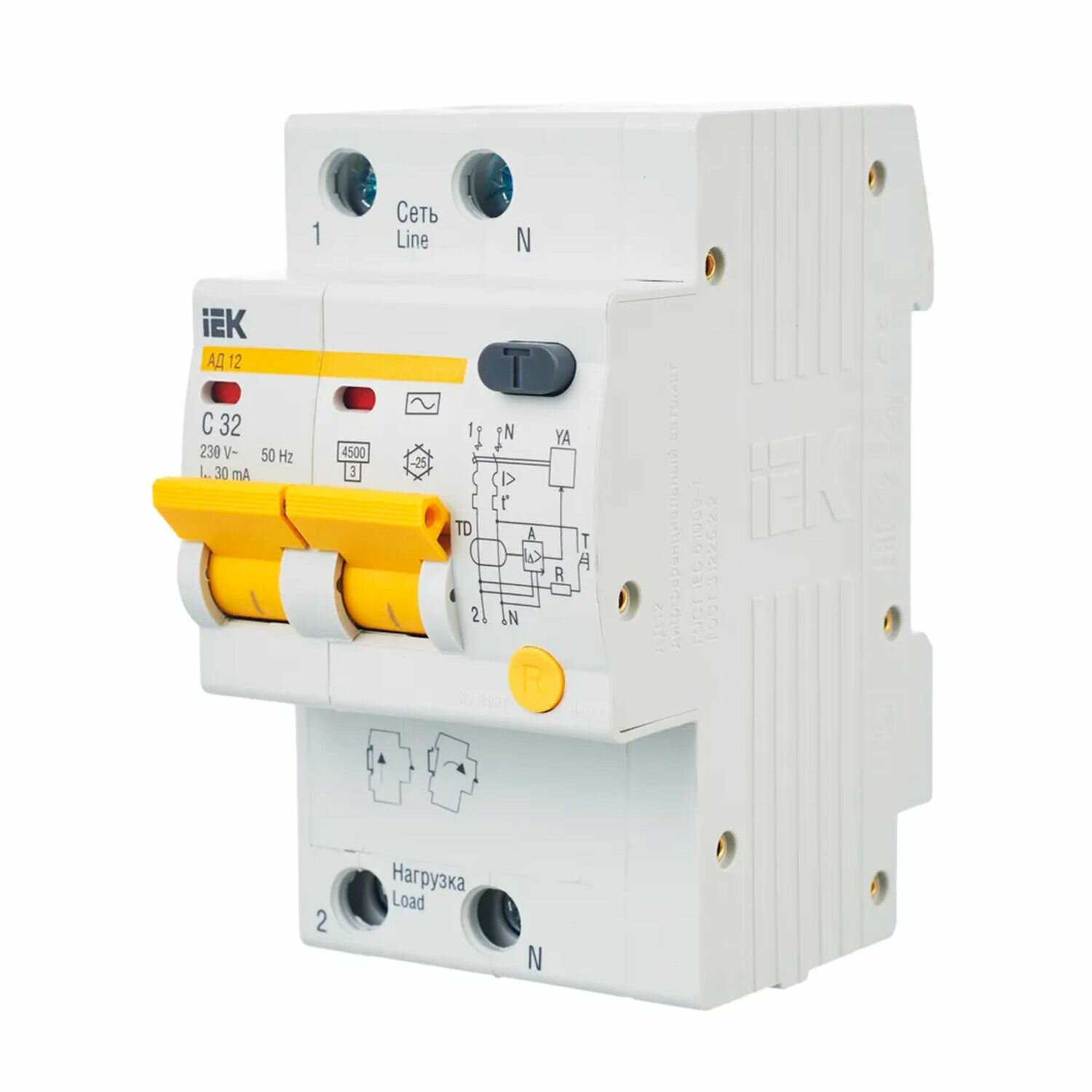 Выключатель автоматический дифференциальный IEK АД-12 2п 32А 30мА С (MAD10-2-032-C-030)