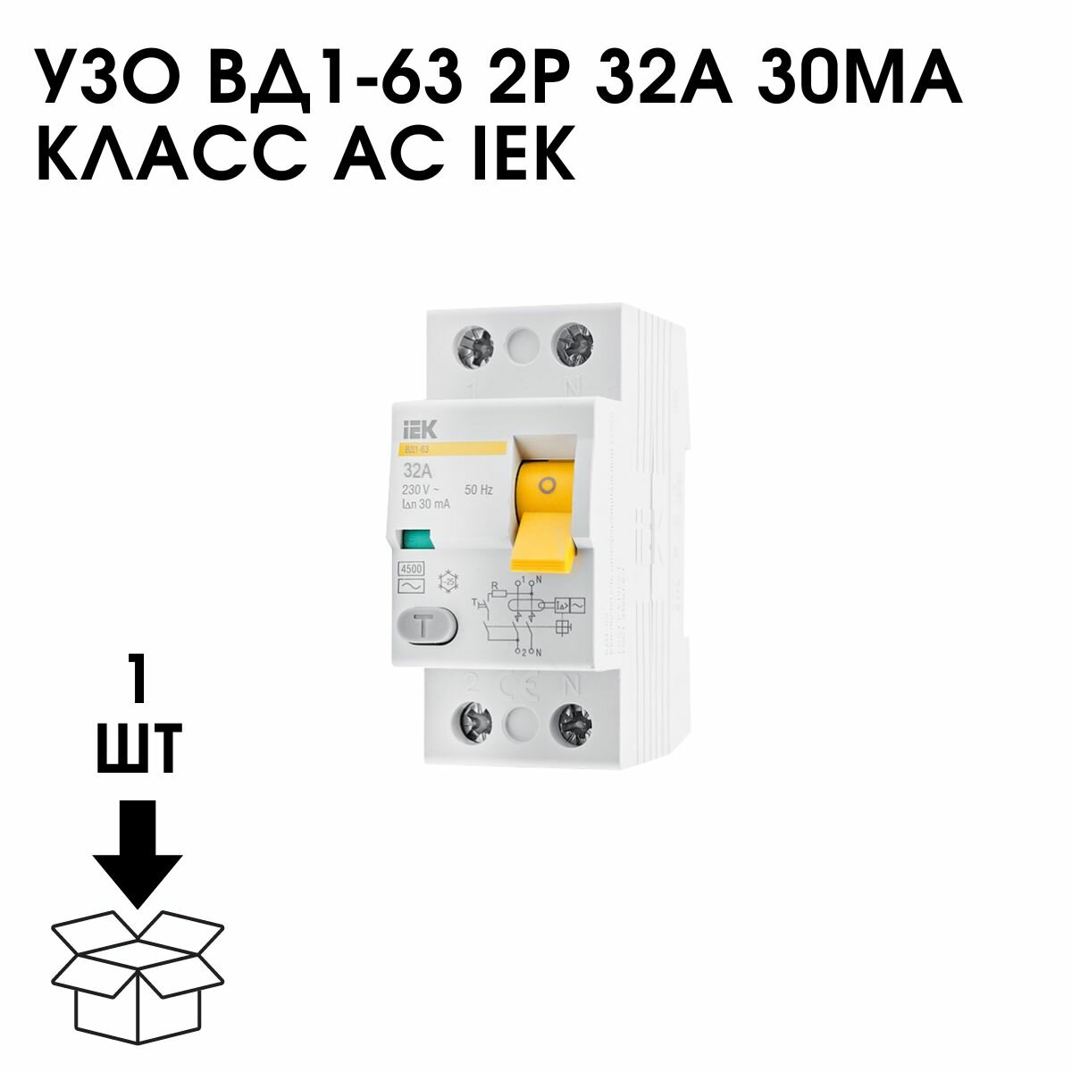 Купить УЗО выключатель дифференциальный 32А ВД1-63 тип АС 30мА 2П IEK