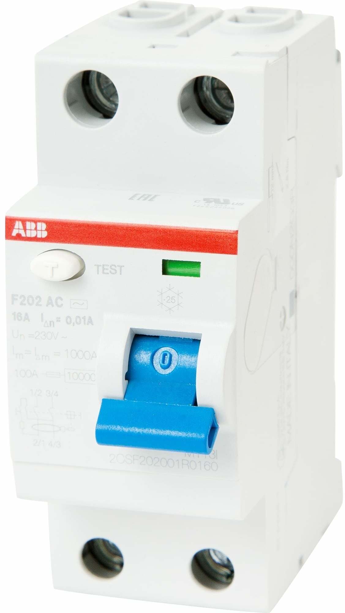 Блок утечки тока (УЗО) ABB F202 АС-16/0,01, 2-х полюсный, 16A, 10mA, тип АC (2CSF202001R0160)