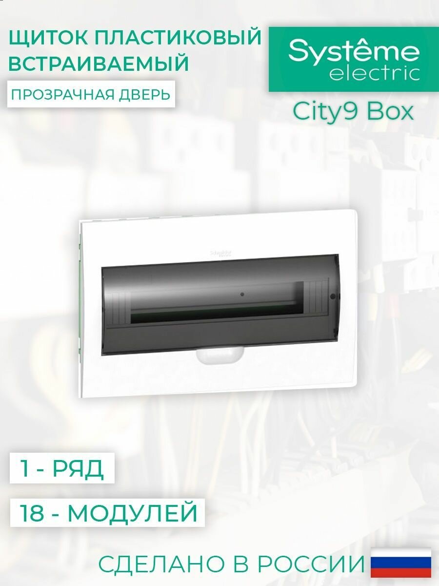 Systeme Electric ( Schneider Electric) City9 Box корпус встраиваемый с прозрачной дверцей 1ряд/18мод EZ9E118S2FRU