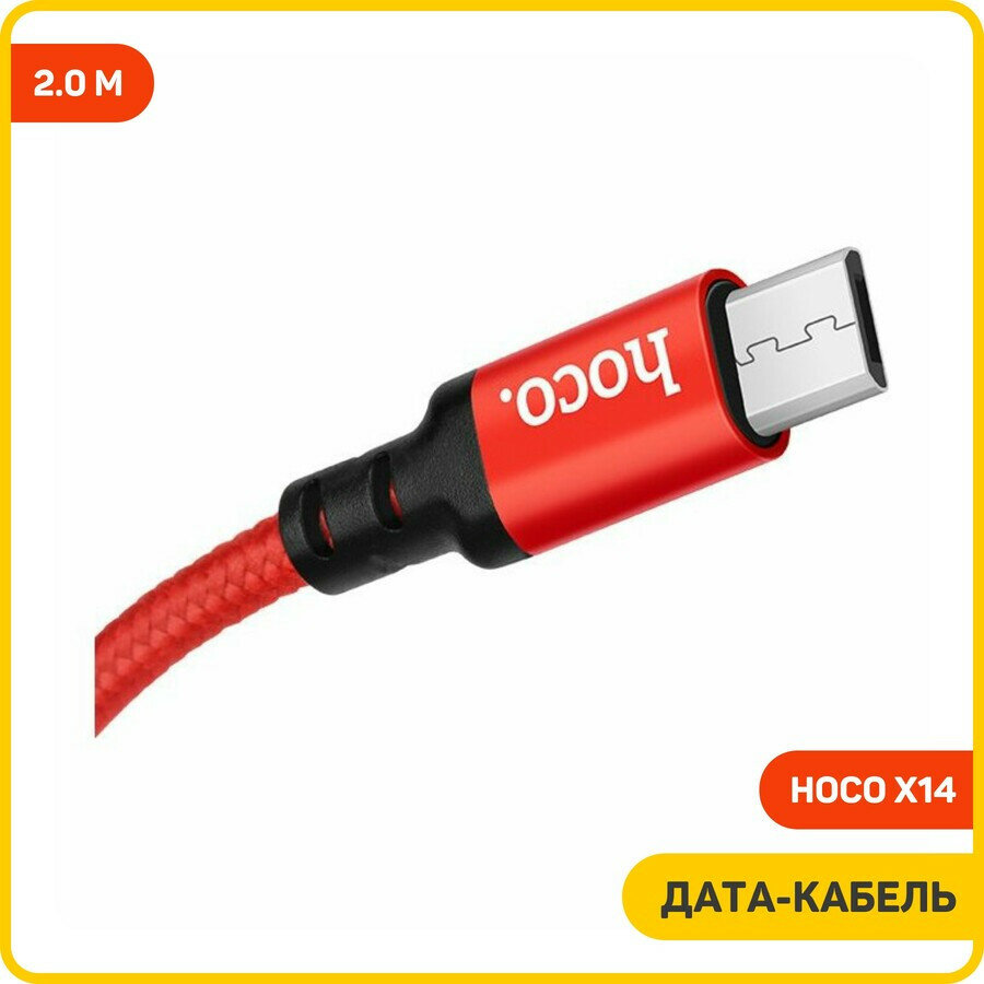 Дата-кабель USB универсальный MicroUSB Hoco X14 (2 метра) (красный)
