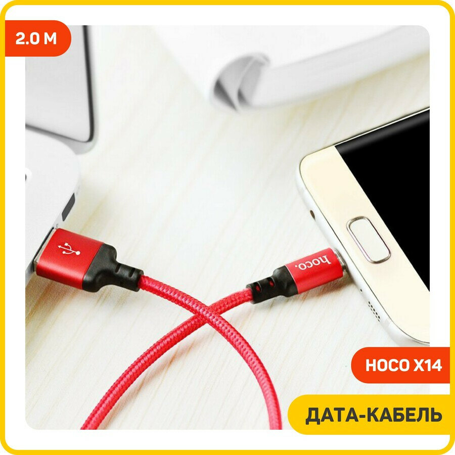 Кабель Hoco X14 Times speed USB - microUSB, 2 м, 1 шт., красный