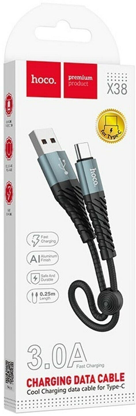 USB кабель HOCO X38 Cool Type-C, 3А, 0,25м, нейлон (черный)