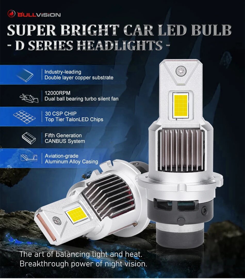 Купить Bullvision D2S D4S 1:1 светодиодный фары HID D1S D3S D5S D8S D1R D3R Kit Xeon светодиодный 300 лм 6500 Вт двухсторонний очень большой CSP чип K, Powerful finned Fan, 30Pcs CSP LED, D4S