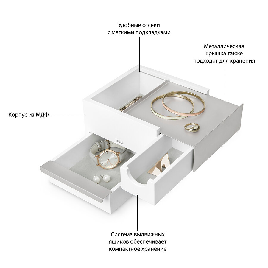 Купить Umbra Шкатулка для украшений stowit mini белая-никель Umbra