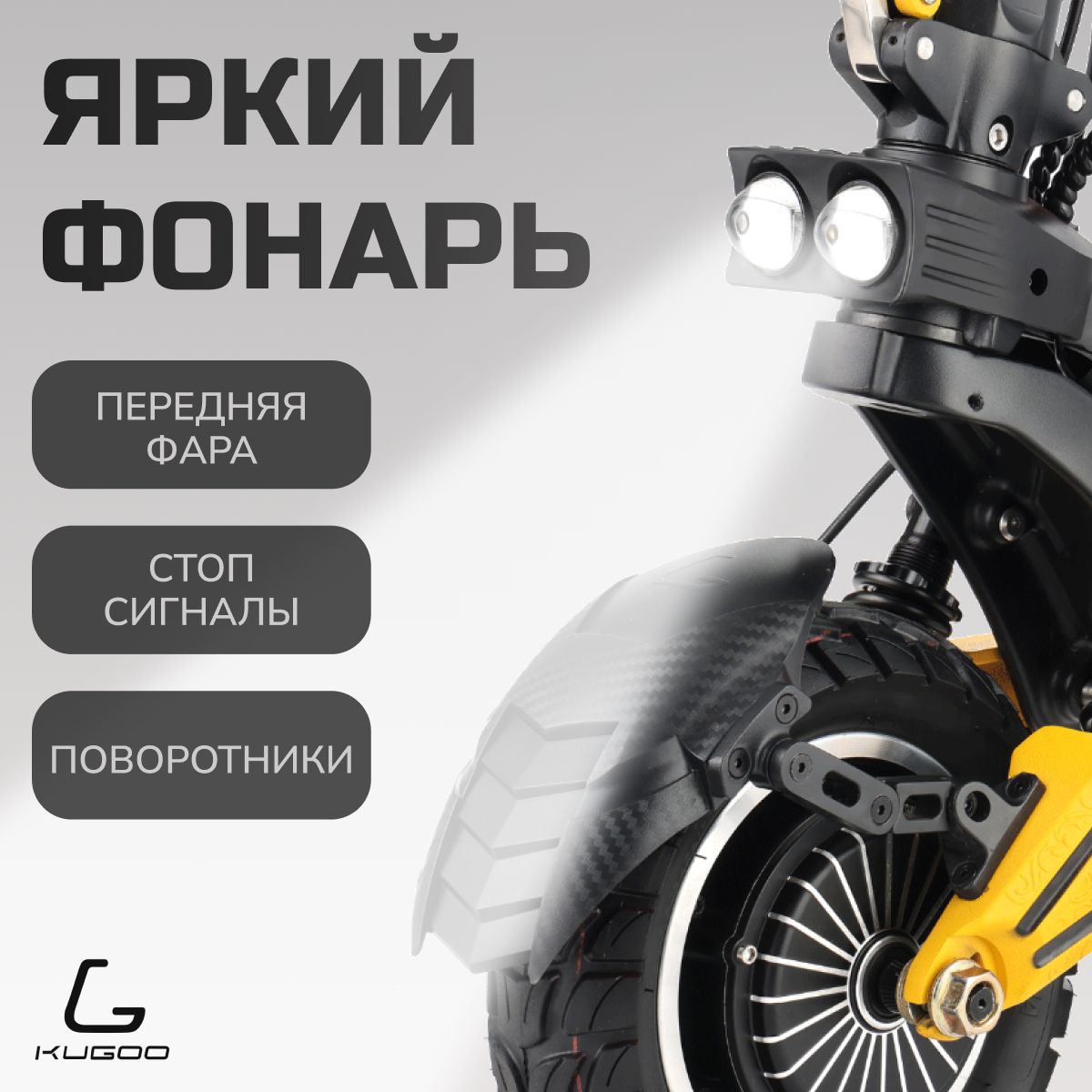 | Отзыв: | На фотографии не Kugoo M5, а Ubgo, у M5 двойные передние амортизаторы и три фары.