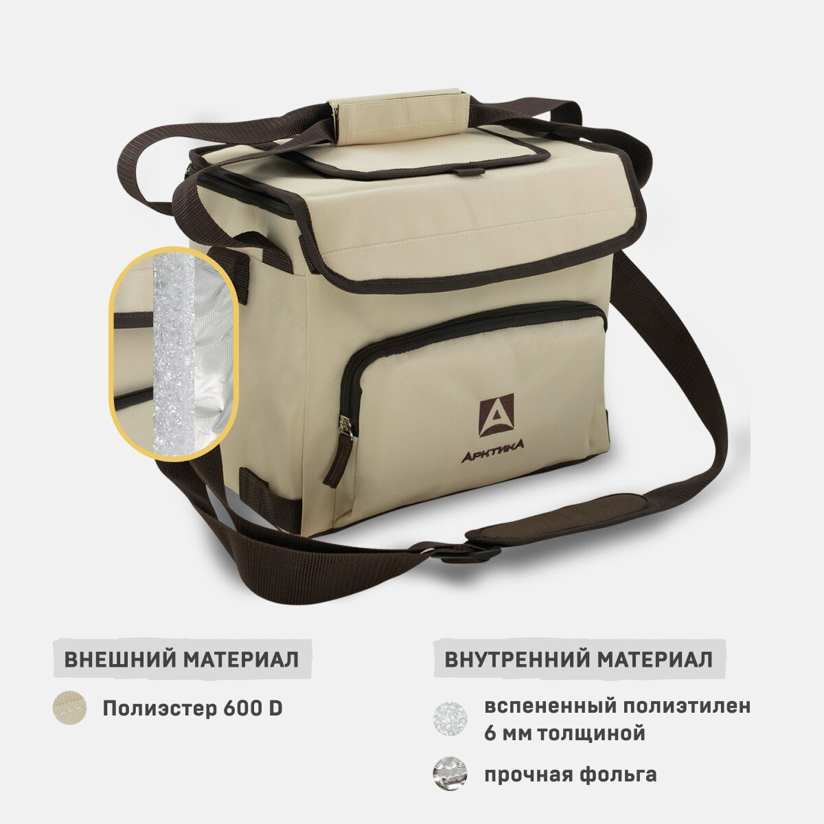 Сумка-холодильник Арктика классическая, с люком, 20л, бежевая