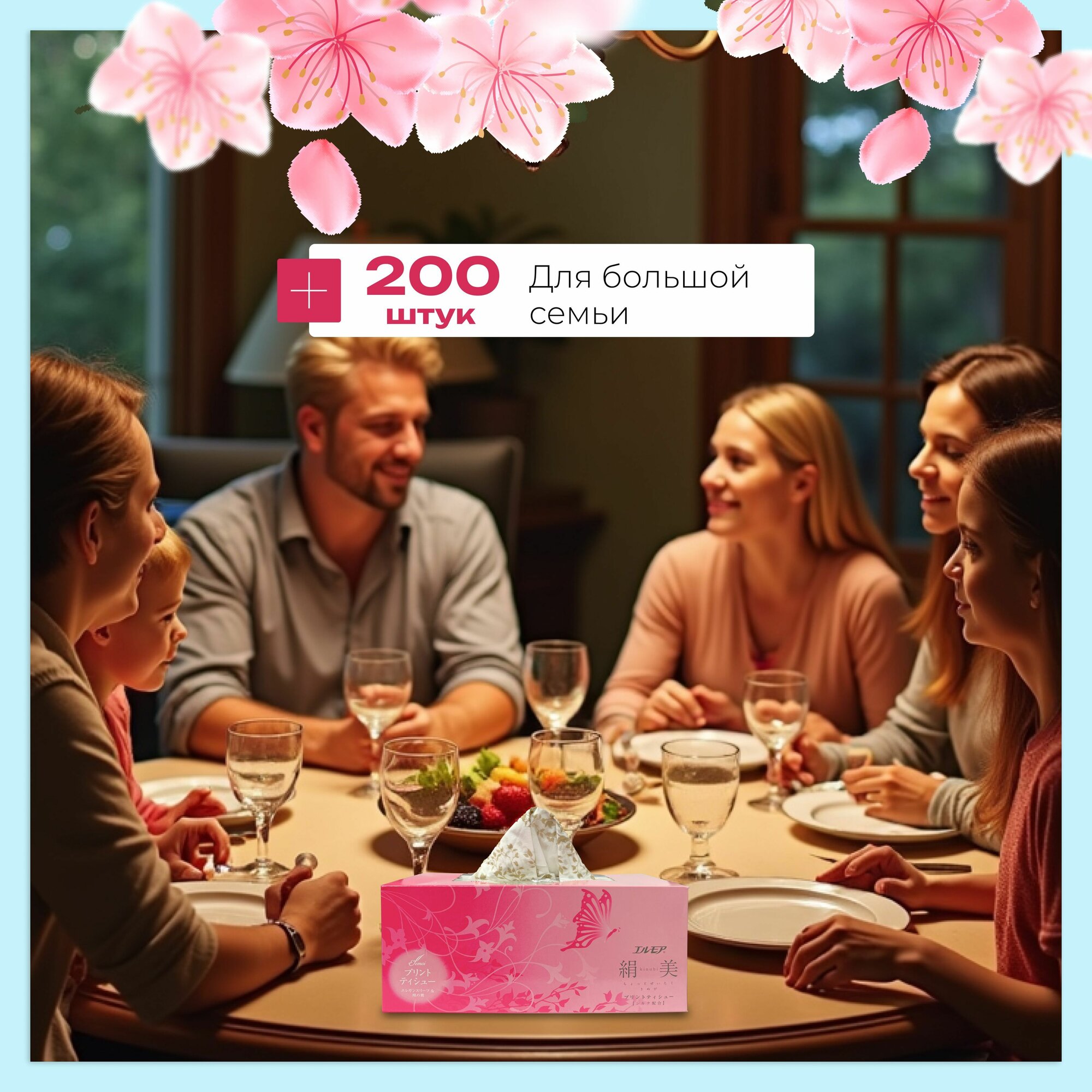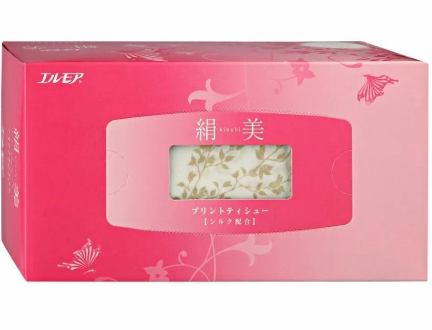 Салфетки бумажные с шелком, двухслойные Kami Shodji ELLEMOI "Kinu-bi", 200 шт, Япония / Салфетки косметические в коробке, японское премиум качество, сухие для всей семьи