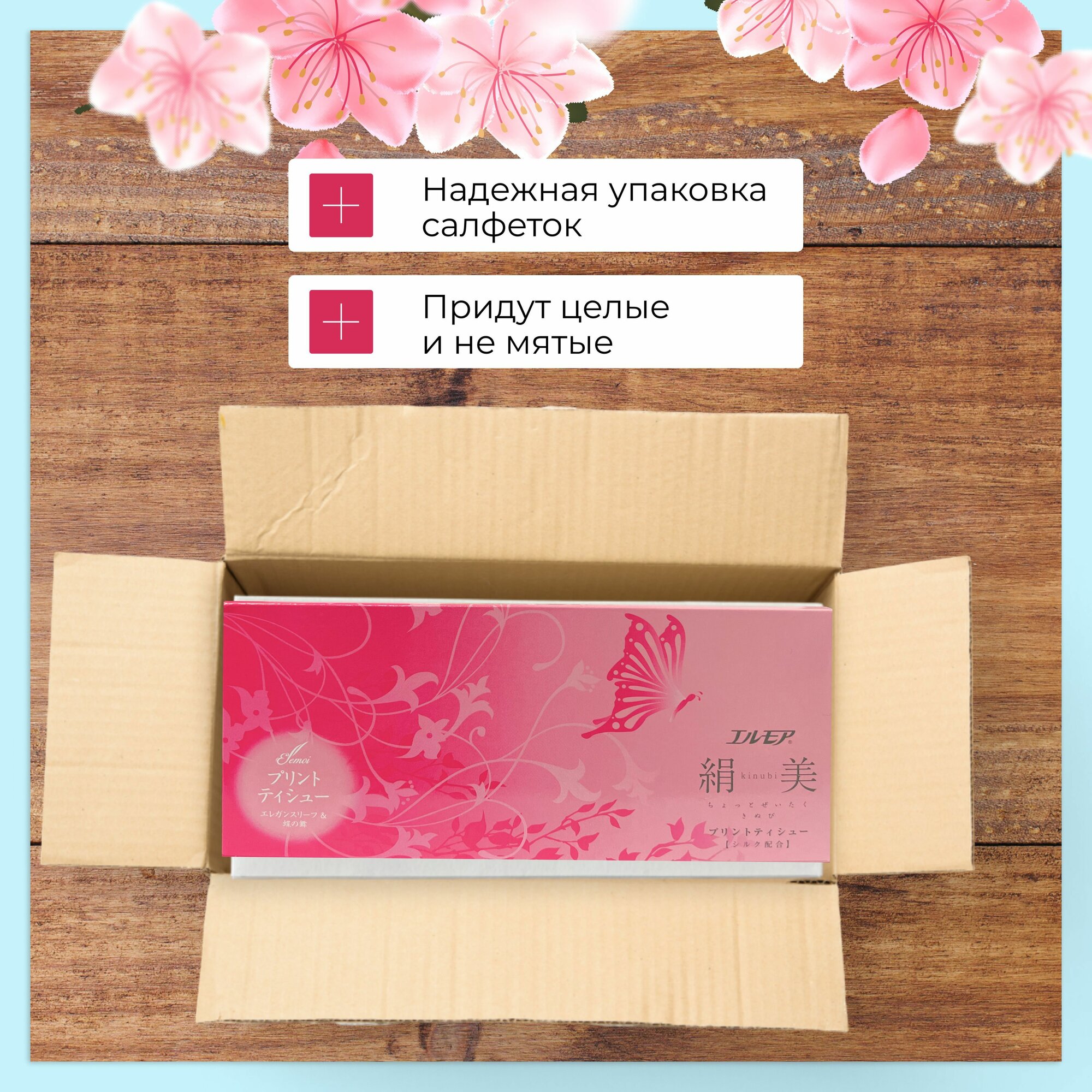 Kami Shodji Бумажные двухслойные салфетки с шелком "ELLEMOI" "Kinu-bi", 200шт (1 пачка)