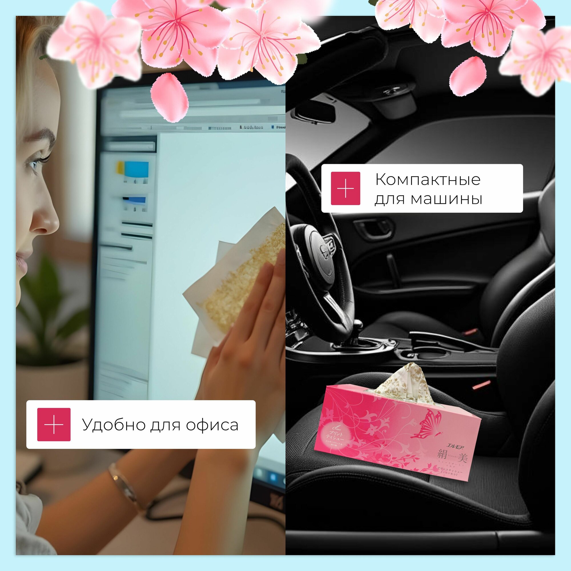 СохранитьСалфетки бумажные с шелком двухслойные 200 шт Kami Shodji Kinu-bi Япония, платочки косметические носовые в коробке сухие для всей семьи экологичные интересное: