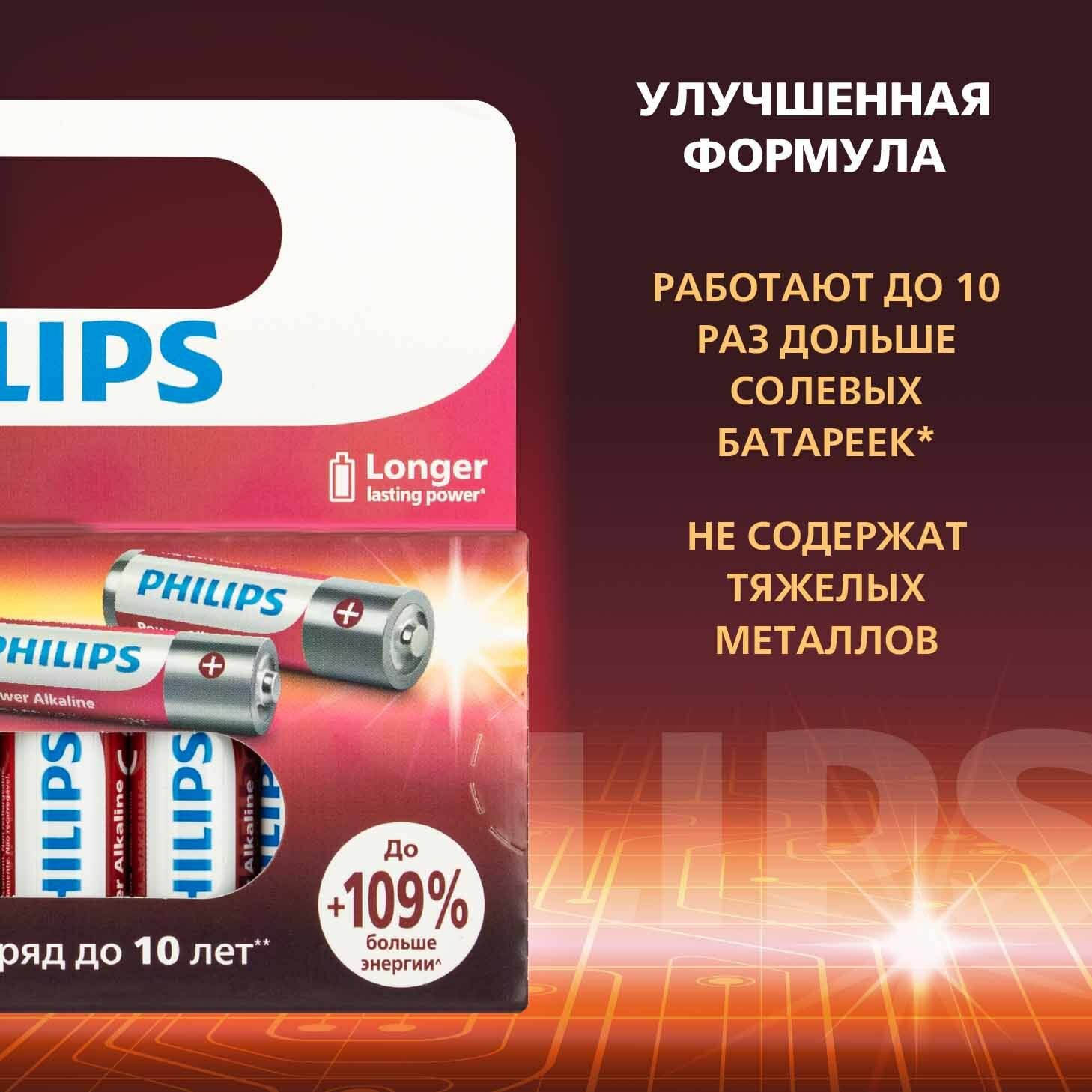 Элемент питания алкалиновый AA/LR6 1.5В Power (блист. 4шт) Philips Б0062746