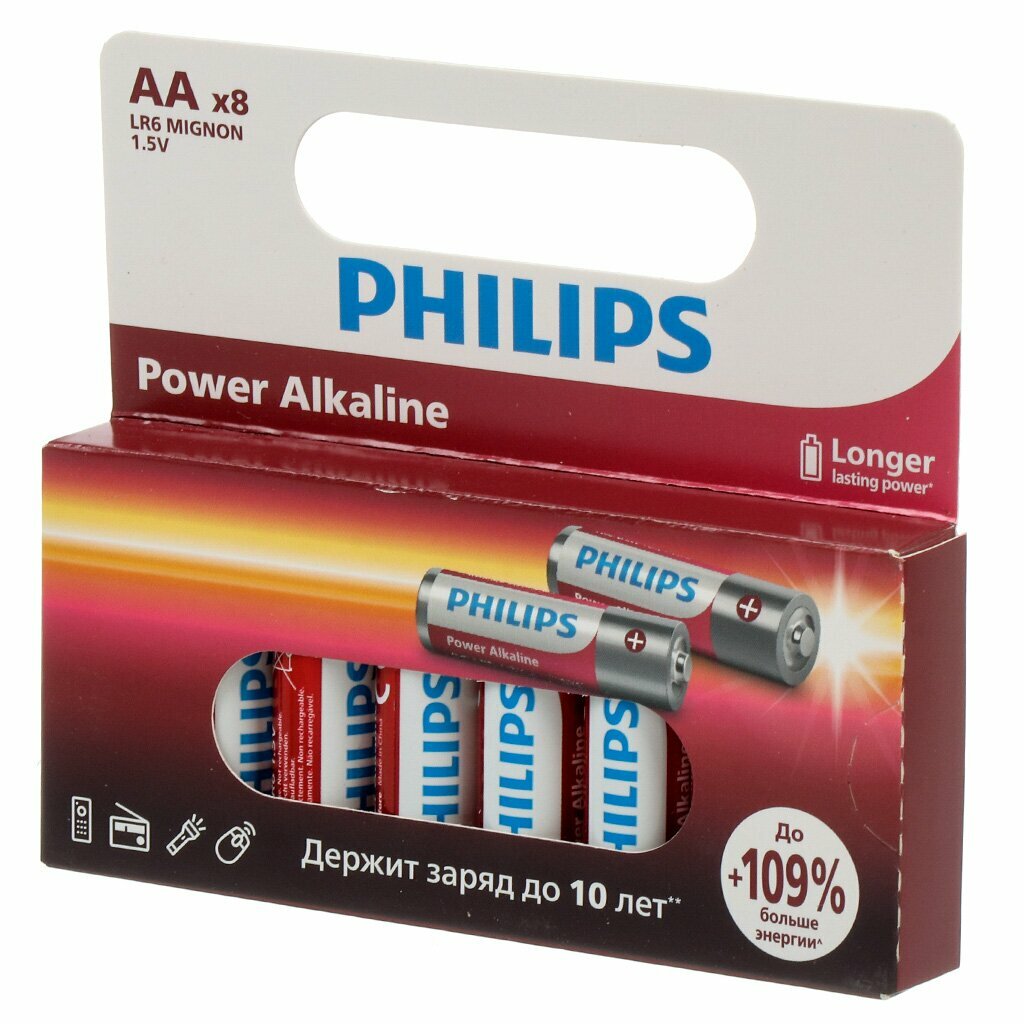 Купить Батарейка Philips, АА (LR6-8BL), Power, алкалиновая, блистер, 8 шт, LR6P8W/51