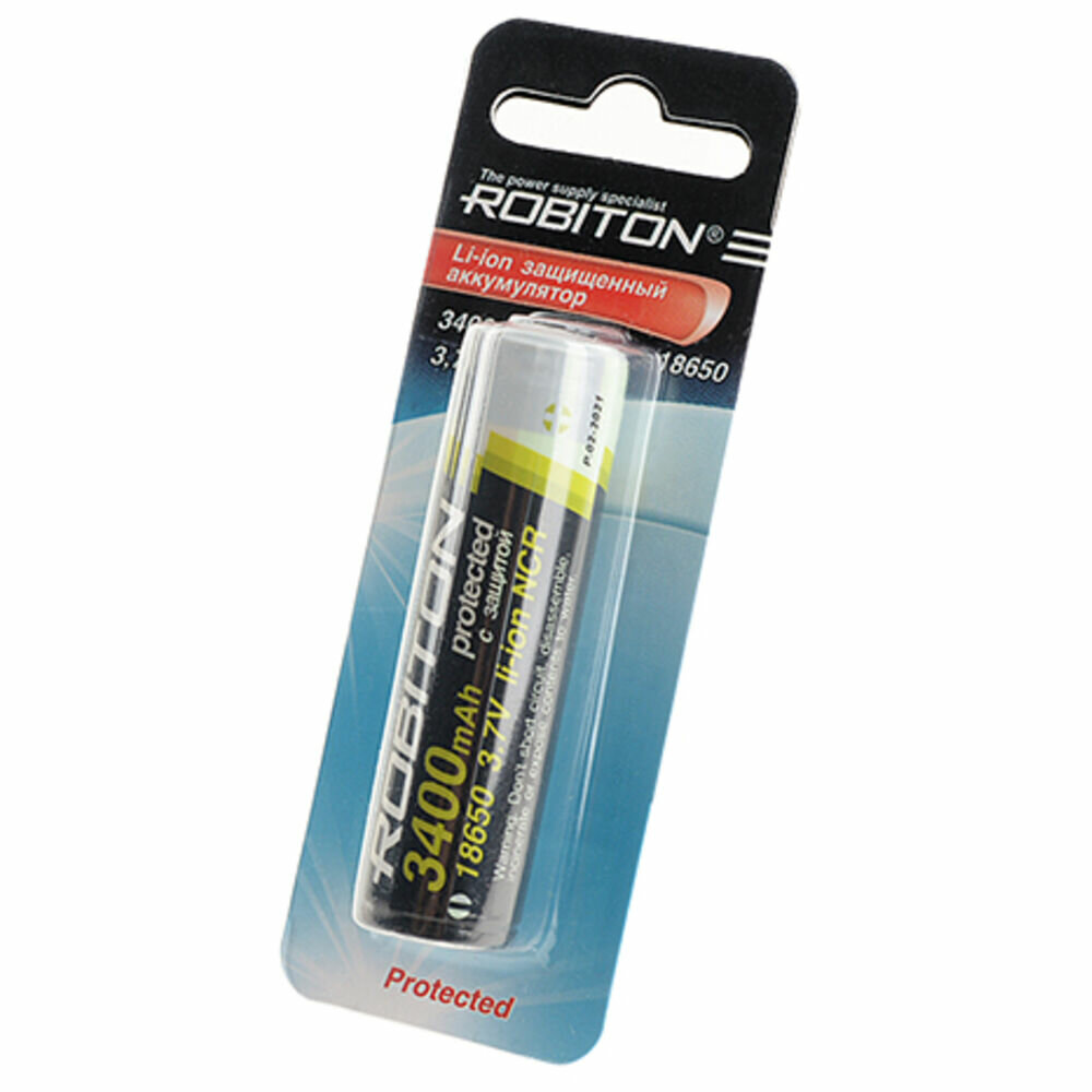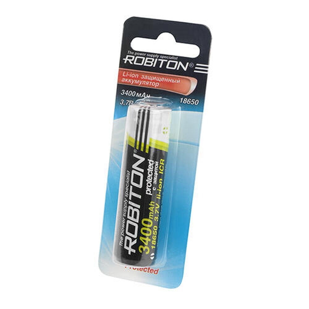Аккумуляторная батарея ROBITON 18650 Li-Ion 3.7В 3400mAh, встроенная защита, бл/1