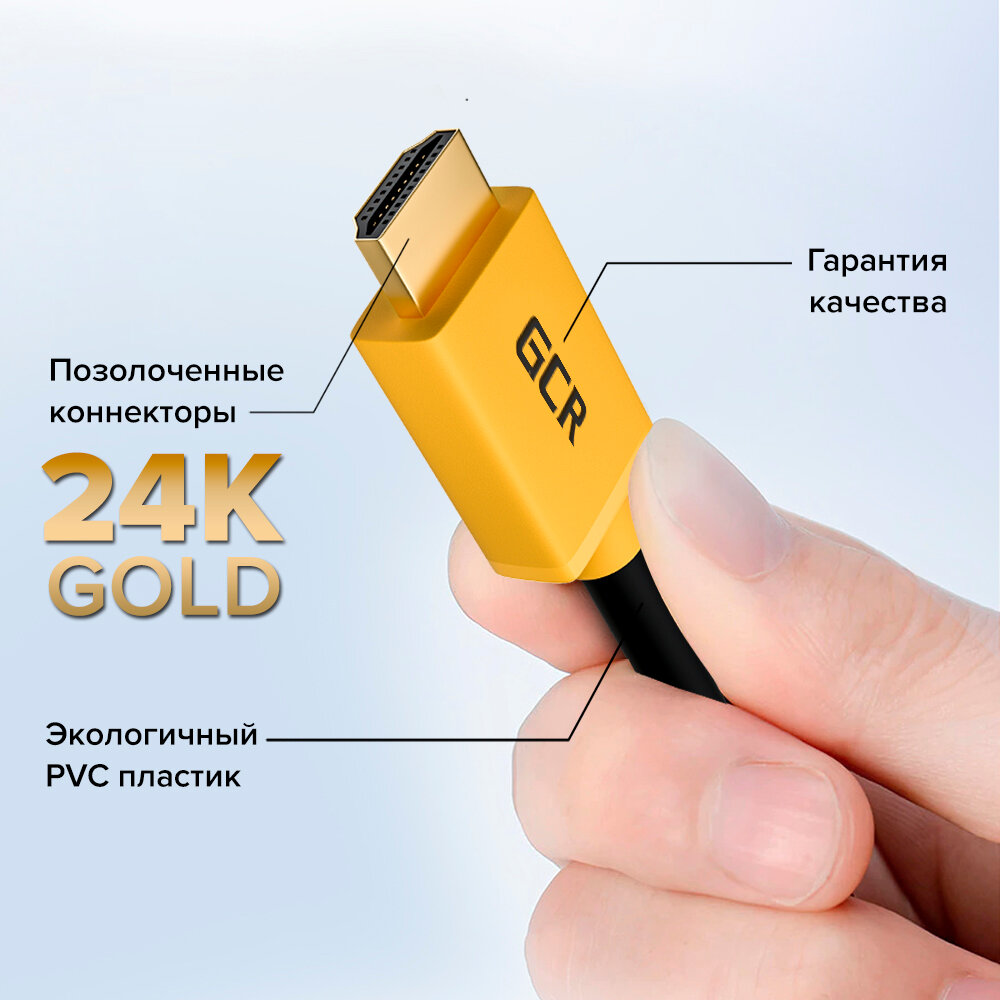 Провод HDMI 2.0 GCR 4K UltraHD HDR 3D 18 Гбит/с для PS4 PS5 Smart TV двойное экранирование армирование (GCR-HM401) черный;желтый 15.0м