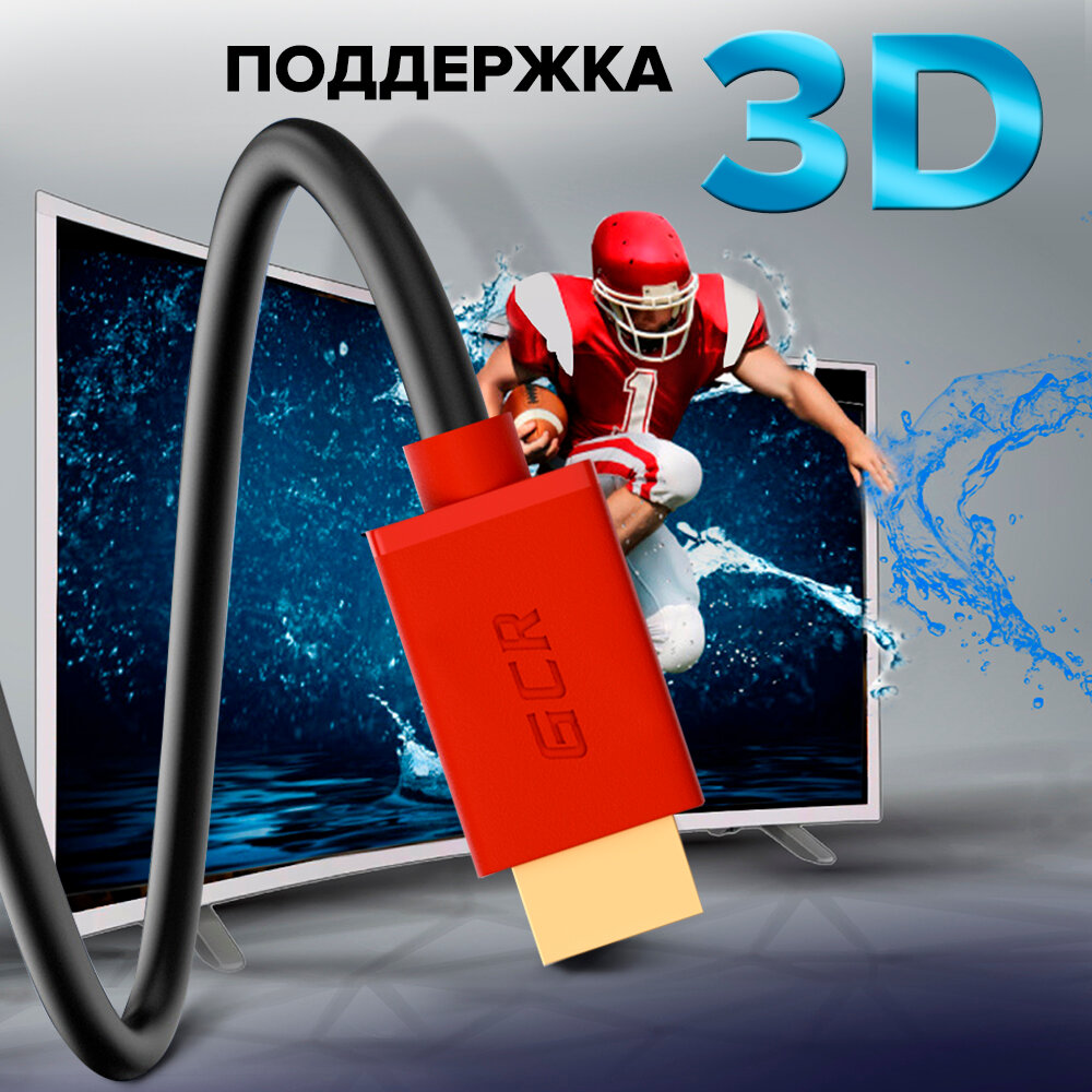 HDMI 2.0 Кабель GCR 4K UltraHD HDR для монитора 3D 18 Гбит/с для PS4 PS5 Smart TV двойное экранирование (GCR-HM401) черный;красный 3.0м