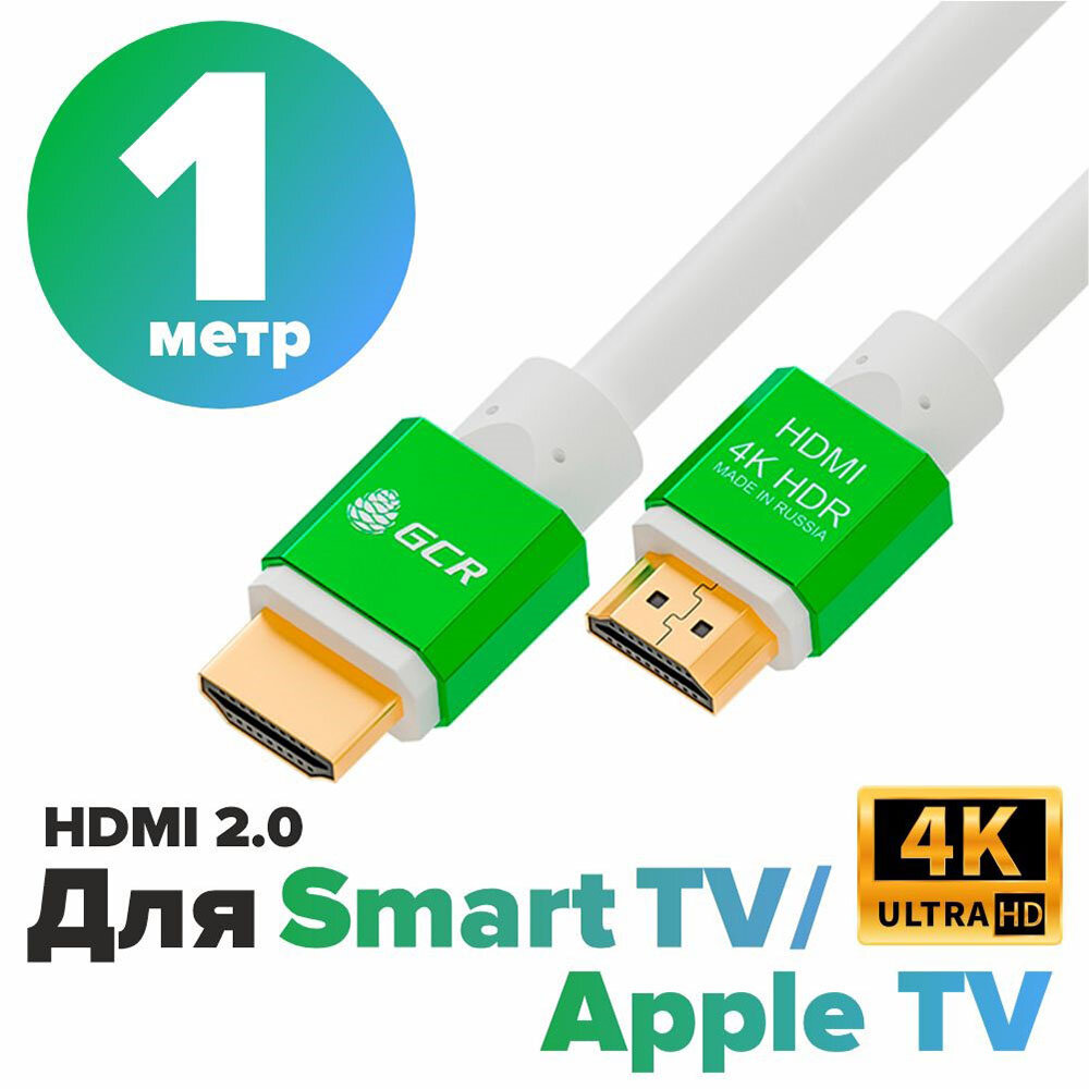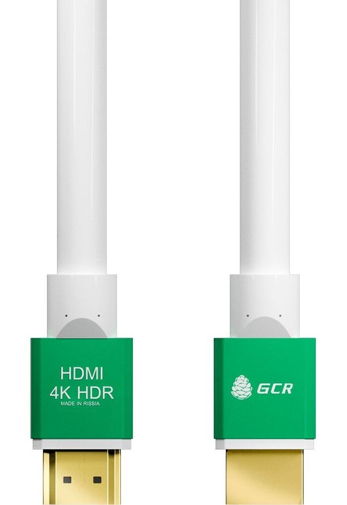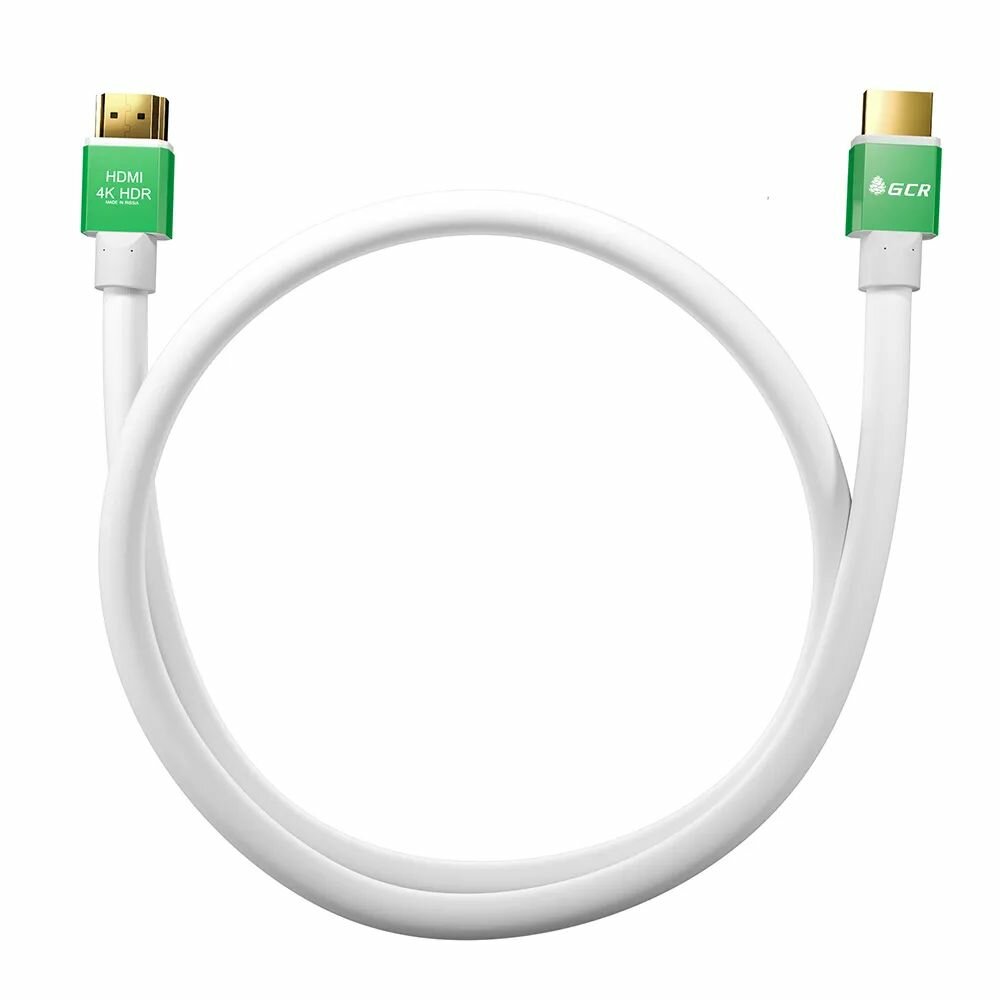 Провод HDMI GCR 1м Ultra HD 4K 60Hz 3D белый с зелеными коннекторами 24K GOLD для приставки