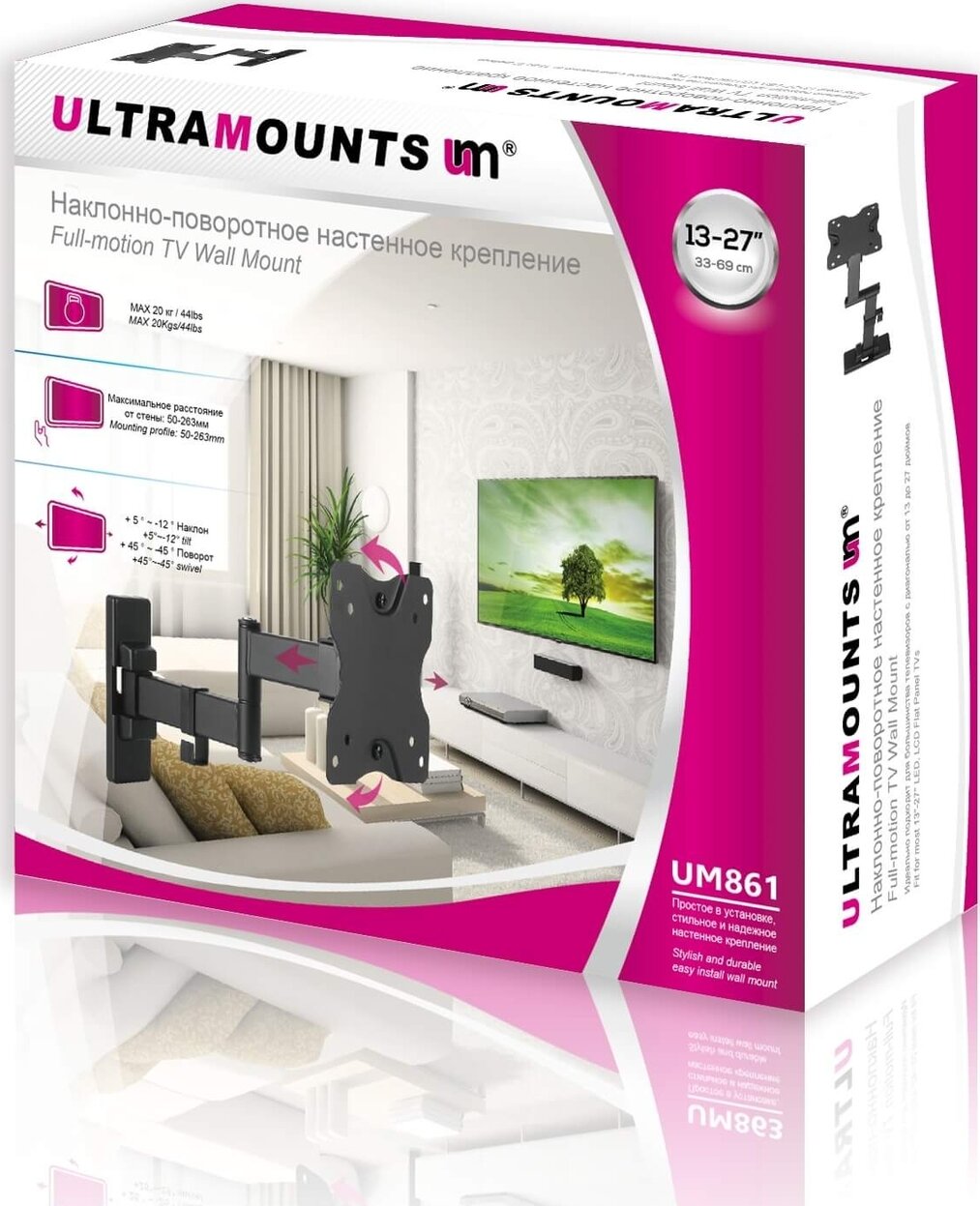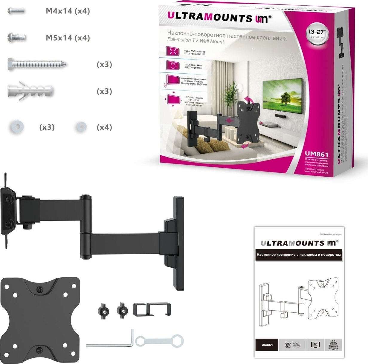 Кронштейн для телевизора ULTRAMOUNTS UM 861, 13-27", настенный, поворотно-выдвижной и наклонный, черный
