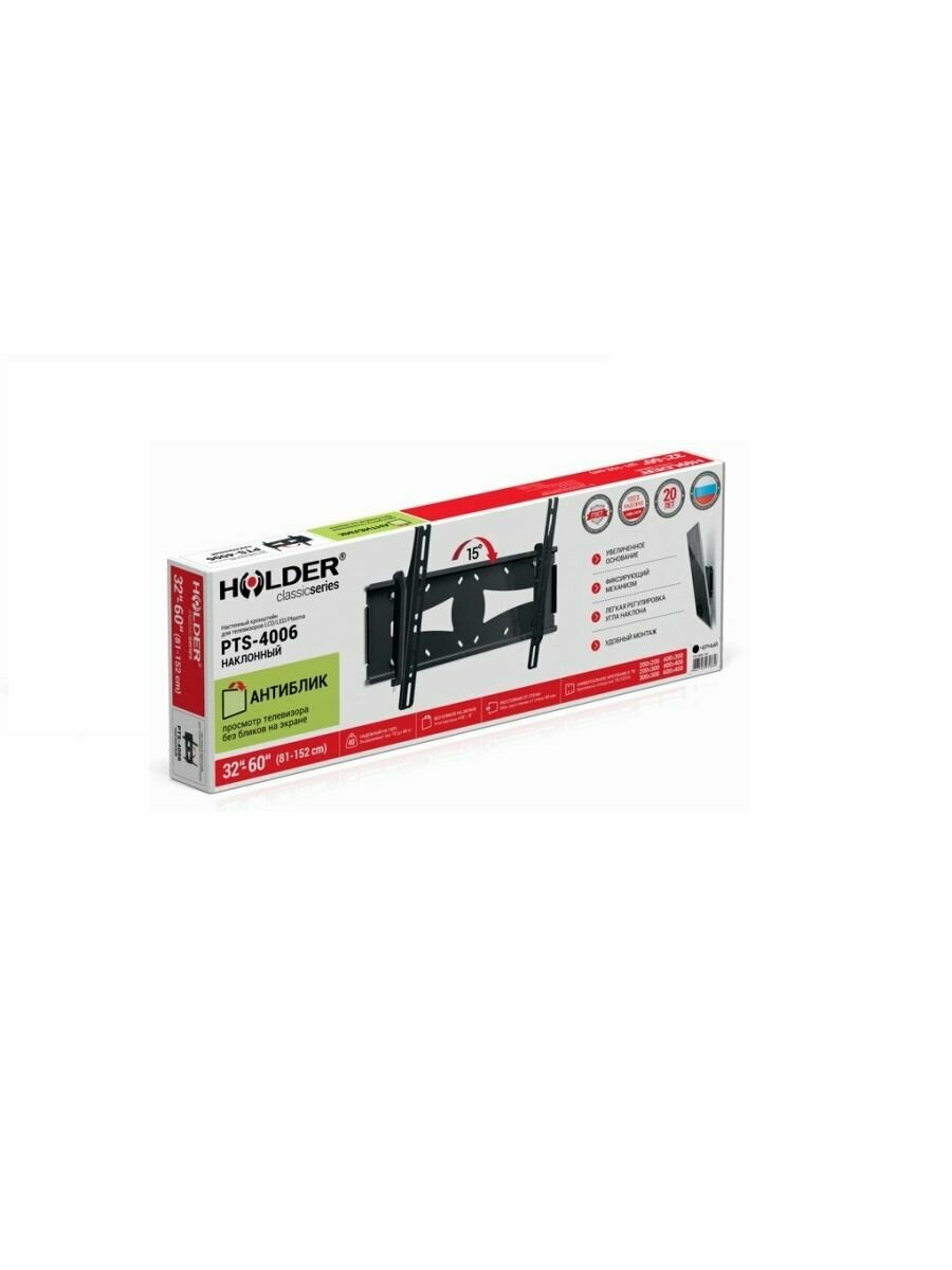 Кронштейн для телевизора 32"-60" HOLDER PTS-4006 наклонный, до 40 кг, черный