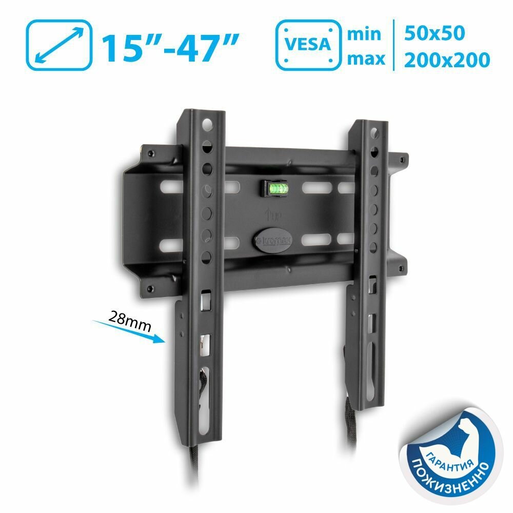 Кронштейн для телевизора Kromax FLAT-5, 15-47", настенный, фиксированный, черный [26011]