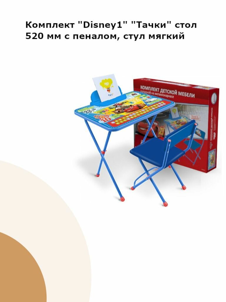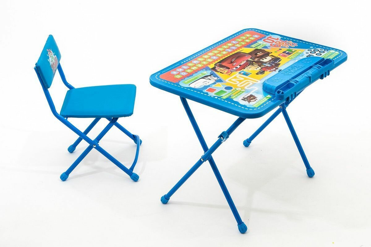 Набор складной мебели (стол + стул) Nika kids Д1П Disney "Тачки", ламинир. столешница, сиденье мягкое/ткань, синий, в коробке