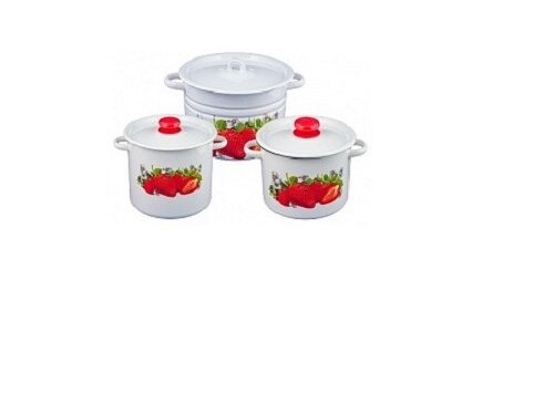 Купить Набор эмалированных кастрюль "Клубника садовая", 3 предмета: 3.5 л, 5.5 л, 8 л