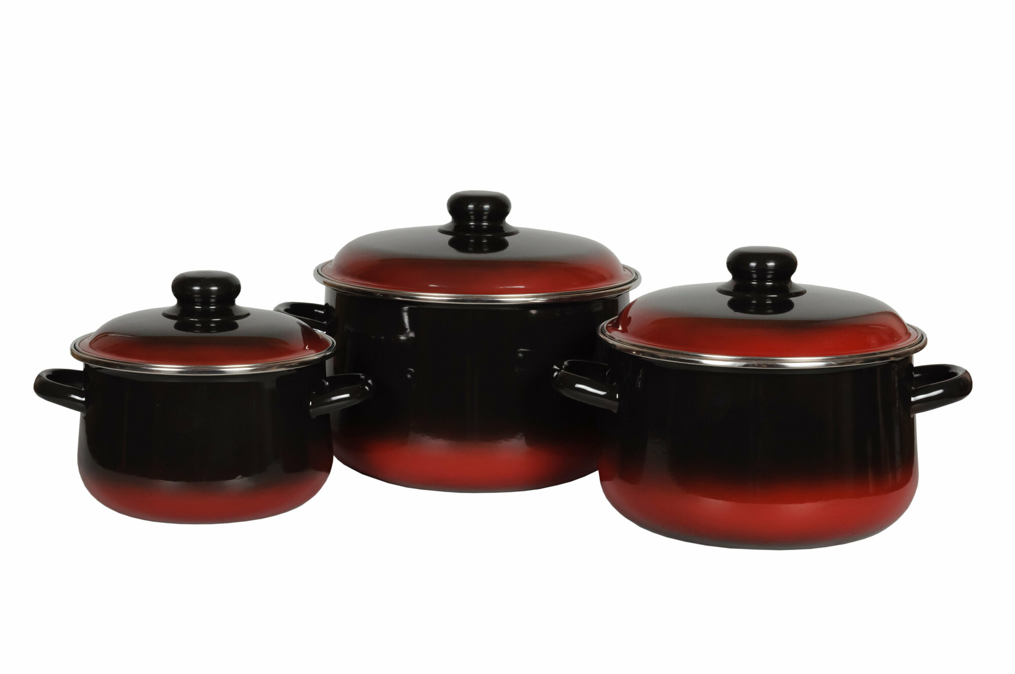 Стальэмаль Набор кастрюль «Кармен», 3 предмета: 2 л, 4 л, 5,5 л, индукция, цвет чёрно-красный