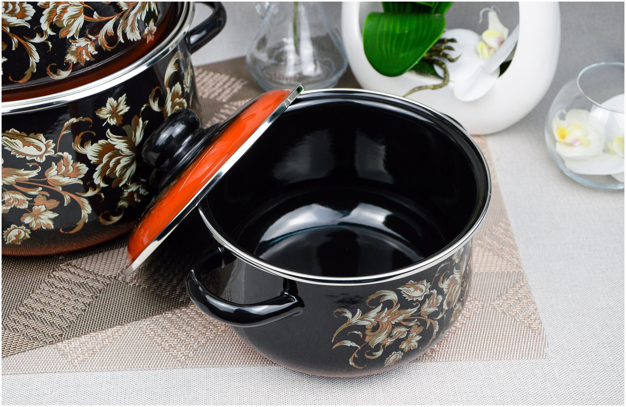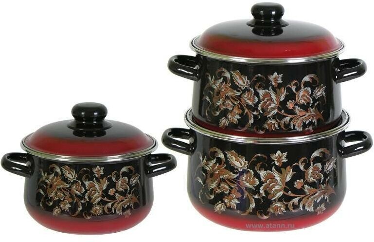 Набор посуды №408 жостово (к.2; 4; 5,5л) эмаль