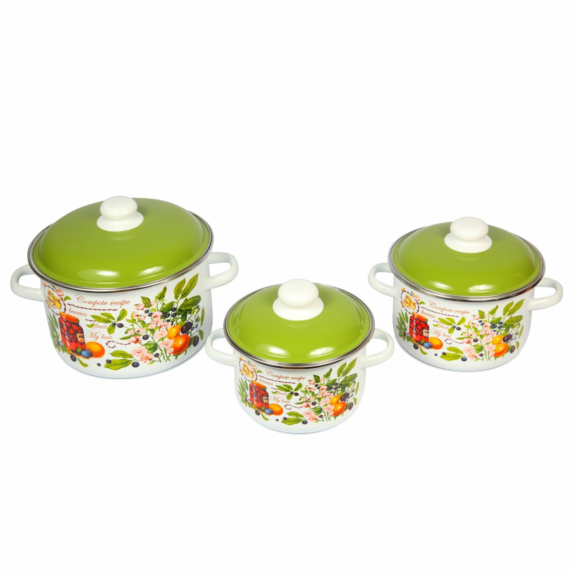 Набор эмалированных кастрюль СтальЭмаль Авокадо, 6 предметов (2, 3, 5,5 л, крышки)