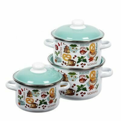Купить Набор эмалированных кастрюль 2л,3л,4л Утренний кофе СтальЭмаль