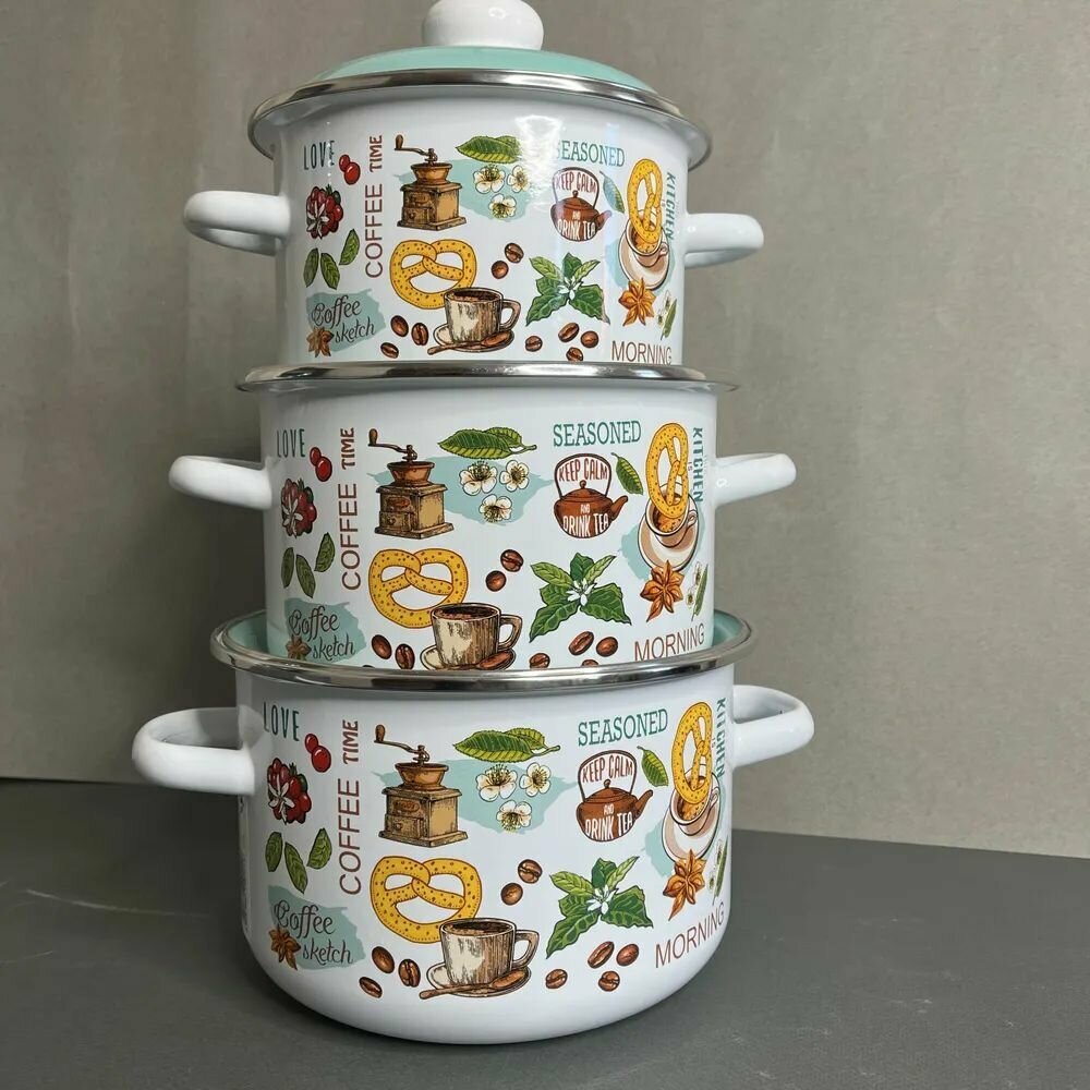 Набор эмалированных кастрюль 2л,3л,4л Утренний кофе СтальЭмаль интересное: