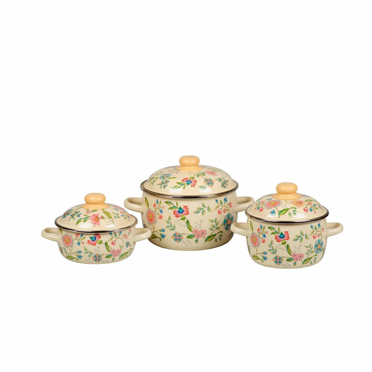 Купить Набор кастрюль Луговые цветы, кастрюли 2/3/4л, 3КА021М, слоновая кость