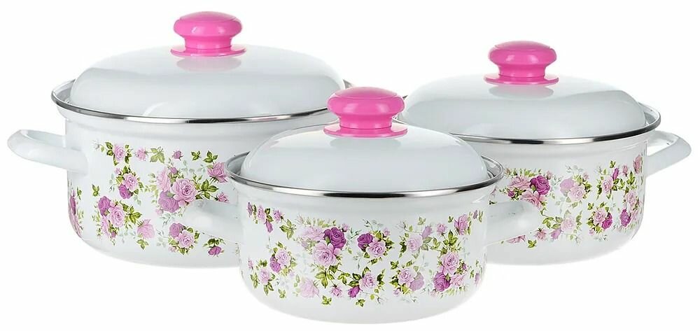 Набор эмалированных кастрюль 1,45л,2,9л,4,3л Анютины глазки Лысьвенские эмали