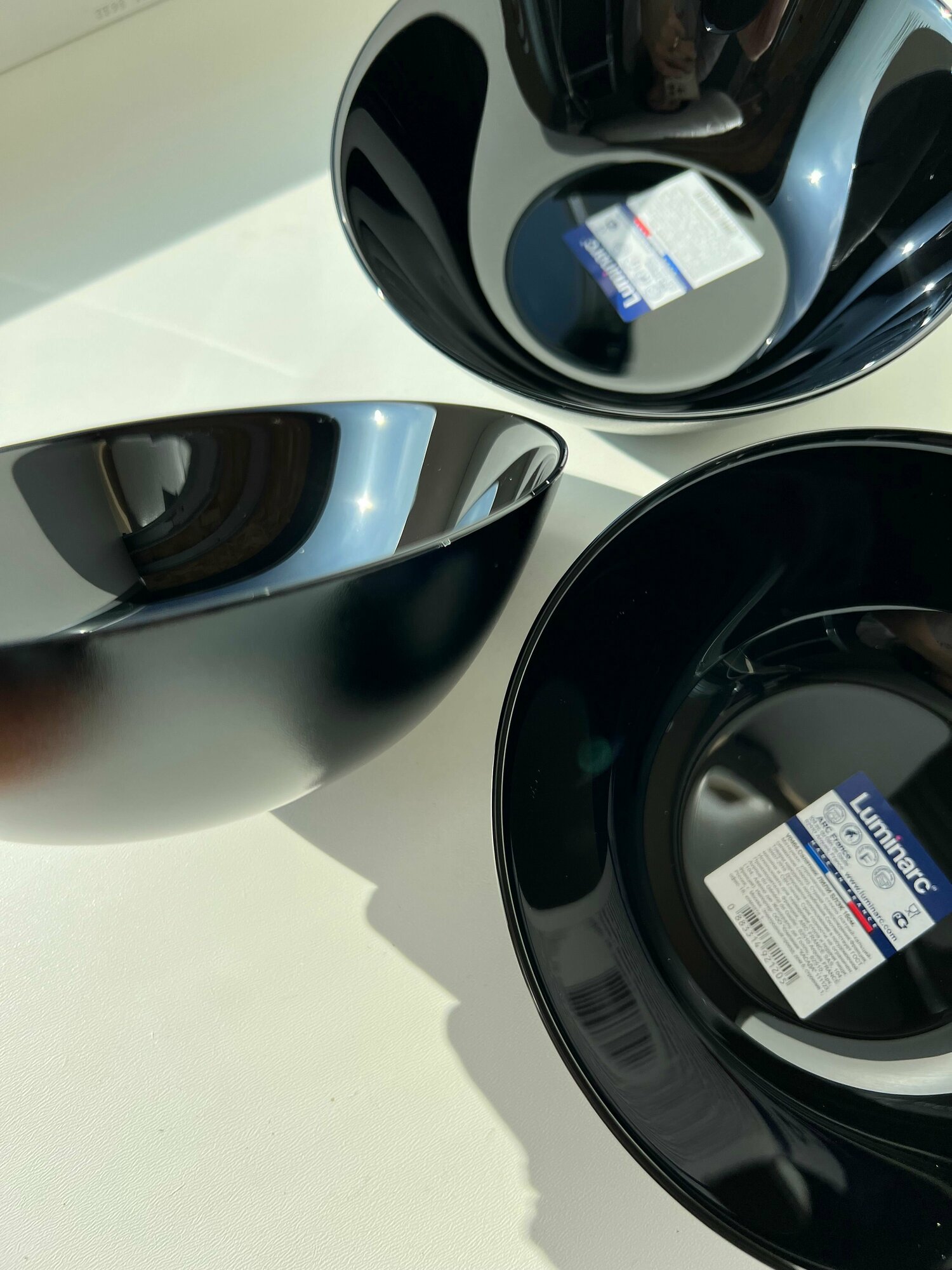 | Минусы: | Купила на замену салатников такого же дизайна,но Китайских, которые можно было использовать и как контейнеры для хранения, потому что в комплекте была крышка.Практически все китайские разбились в течении полугода, а крышки остались.Диаметр салатников был 17 см и им на замену купила Luminarc Салатник Empilable 17 см. В результате- оставшиеся крышки к новому товару не подошли, оказались меньше. |