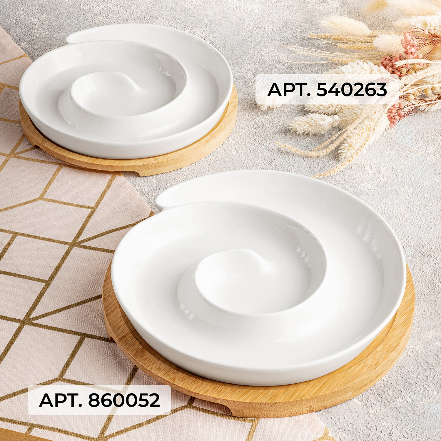 Блюдо - менажница фарфоровая 21,5х21,5х4 см Elan Gallery Улитка на деревянной подставке