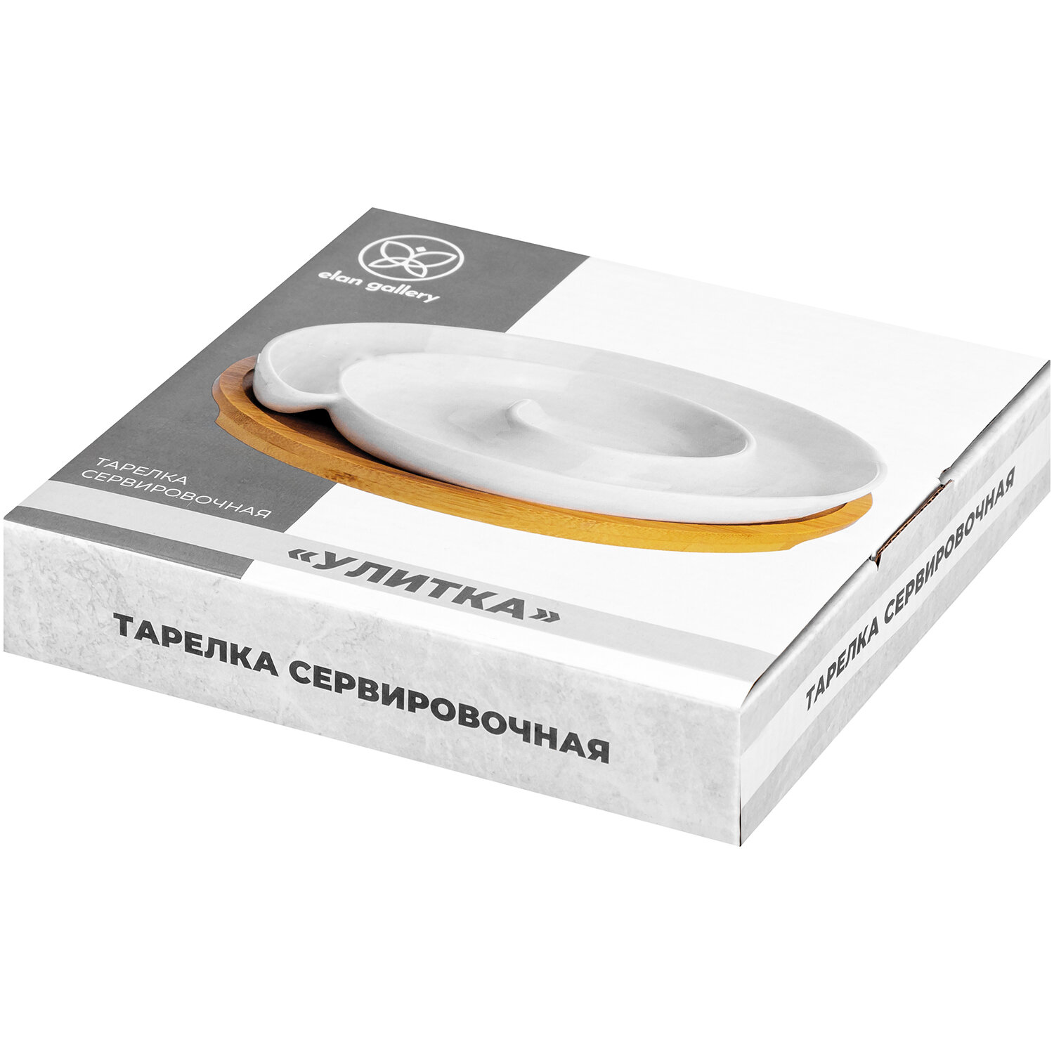 Тарелка сервировочная 18х18х3 см Elan Gallery Улитка на деревянном подносе посуда менажница фарфоровая блюдо тарелка сервировочная для сыра