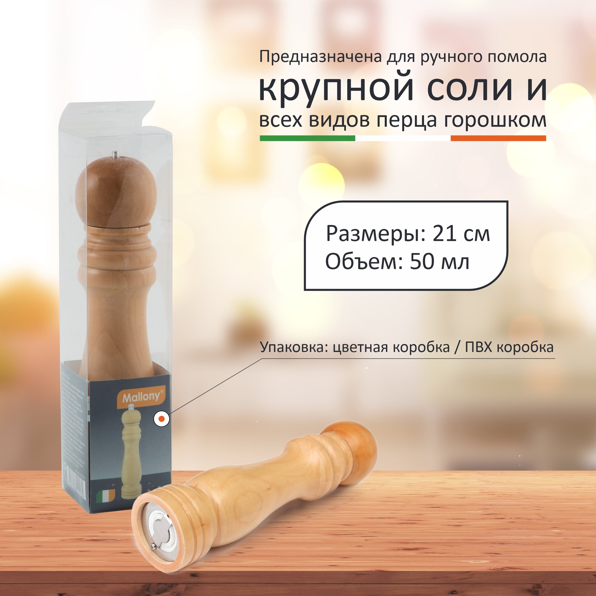Мельница для специй Mallony / Мэллони Piccante дерево/нержавеющая сталь, бежевый, 21см / солонка / перечница