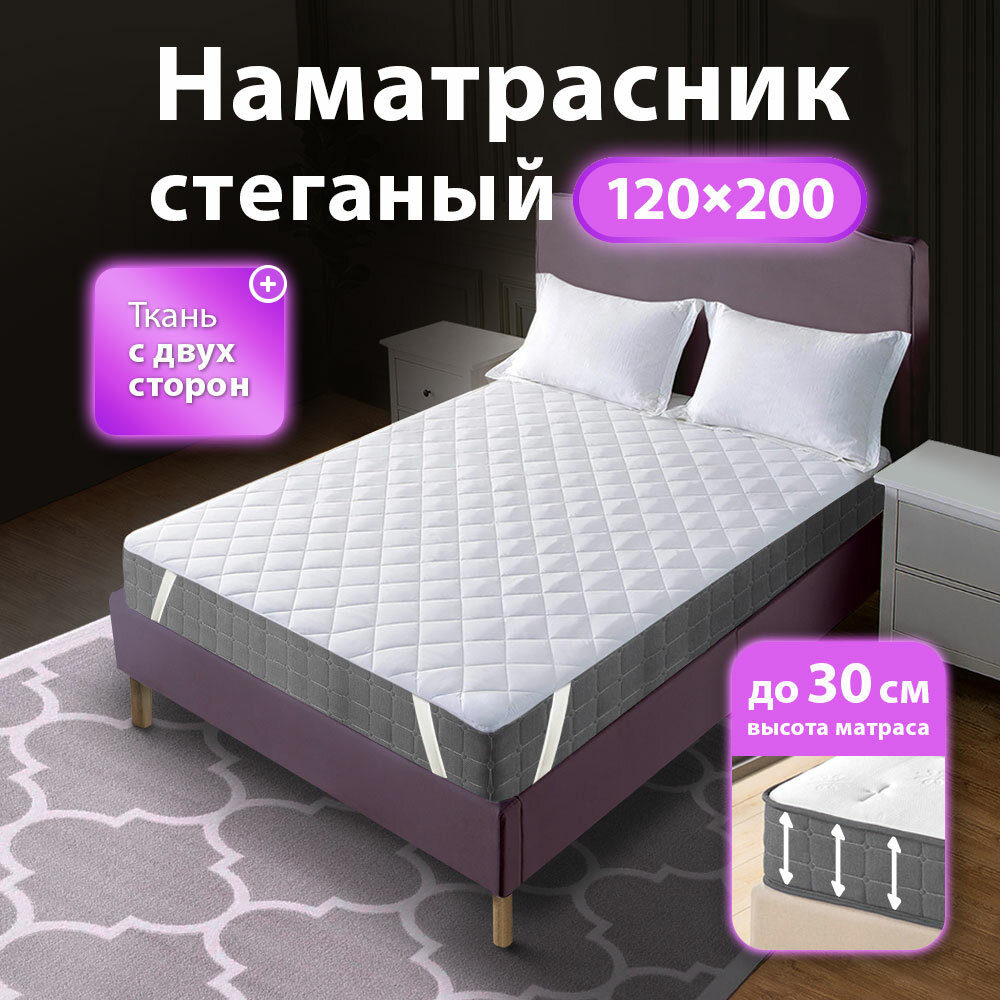 Наматрасник стёганный Асика / Наполнитель овечья шерсть / С резинками по углам - 120х200 см / Чехол на матрас