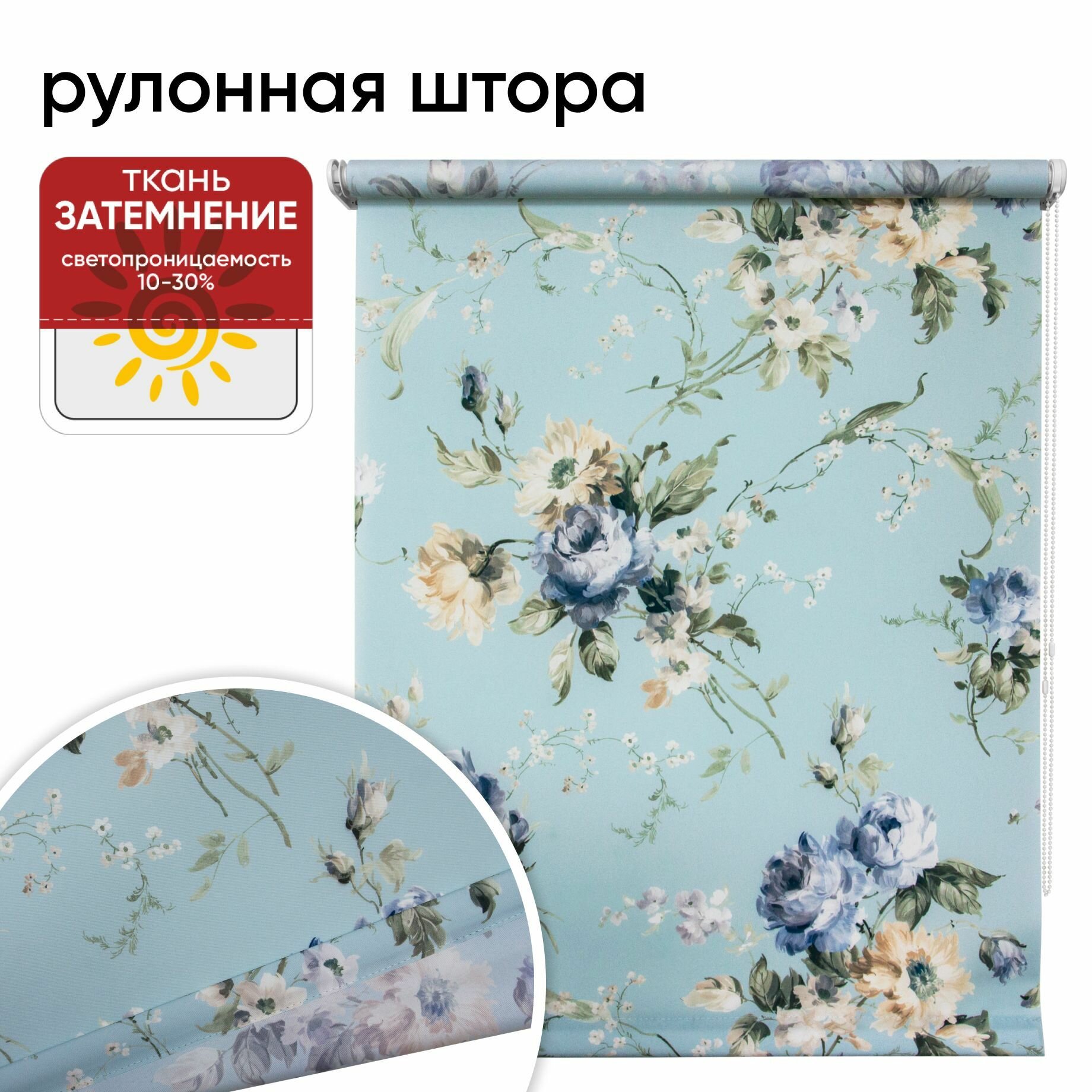 Рулонная штора УЮТ 50 см х 175 см Розарий голубой, рулонная штора, рольштора полиэстер, затемнение 70%