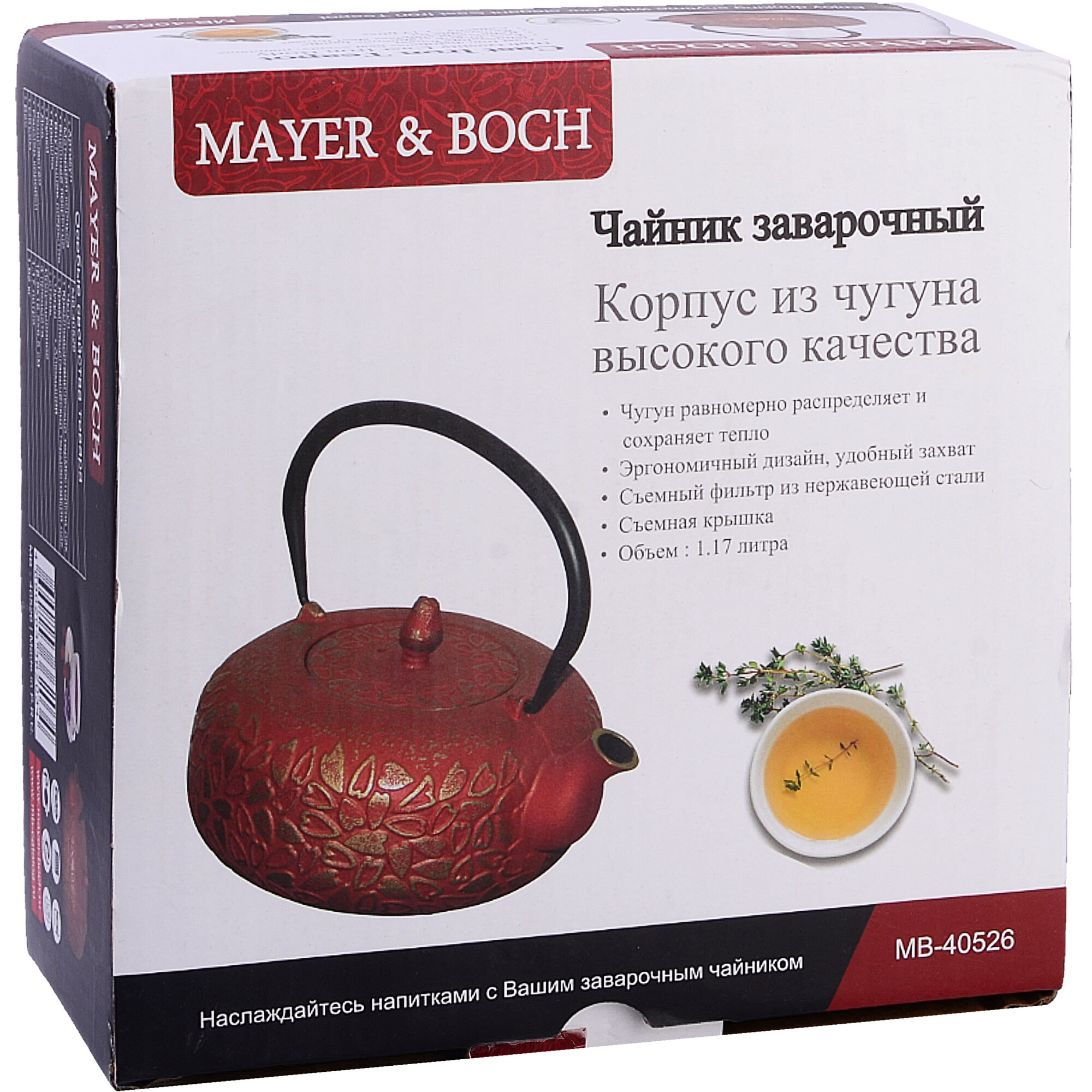 Заварочный чайник Mayer & Boch, чугунный, объем 1,17л с фильтром 40526