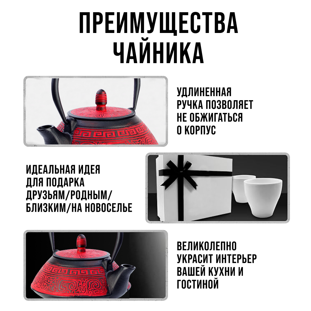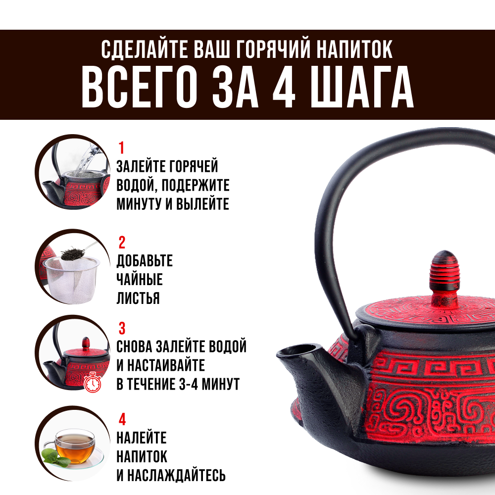 СохранитьЧайник заварочный с крышкой с фильтром 880мл 3 предмета чугун MB 40533 KSMB-40533 интересное: