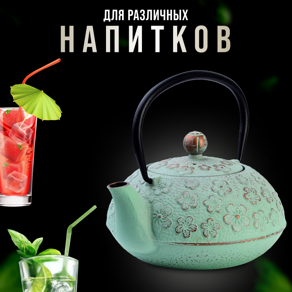 Чайник заварочный чугунный Mayer&Boch / Майер&Бош МВ23697 черный с фильтром 1.1л / посуда для чая